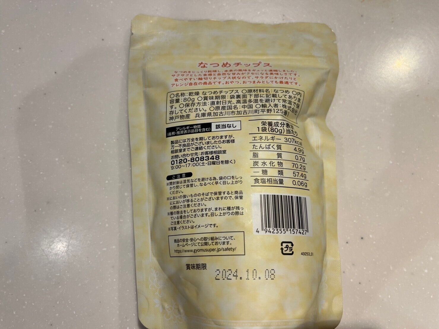 サクサクした食感で、ダイエット中にスナック菓子が恋しくなってもなつめチップスがあればもう大丈夫ですよ!