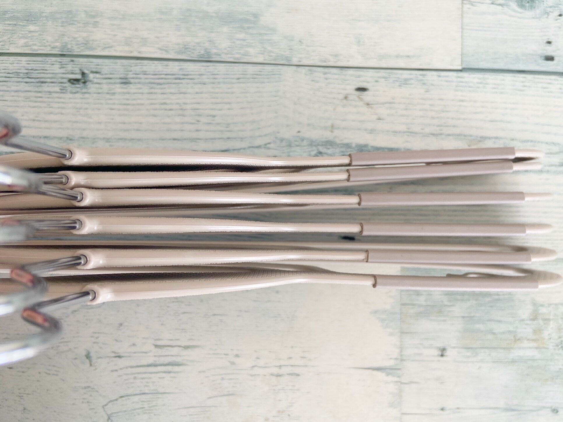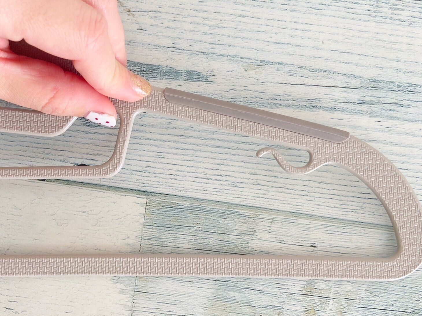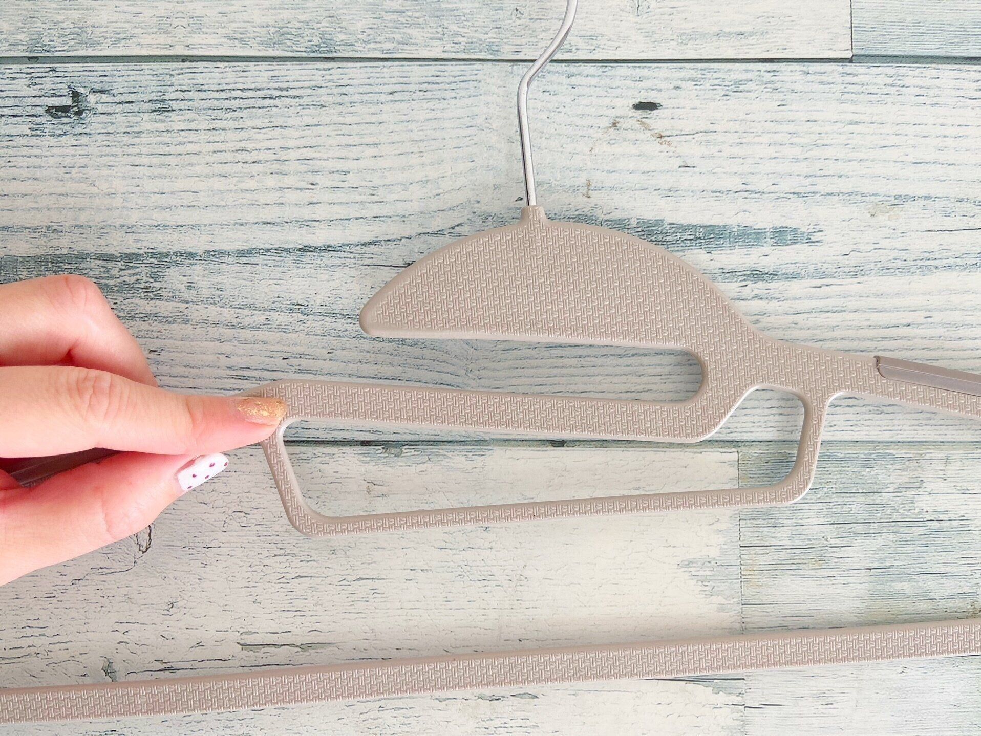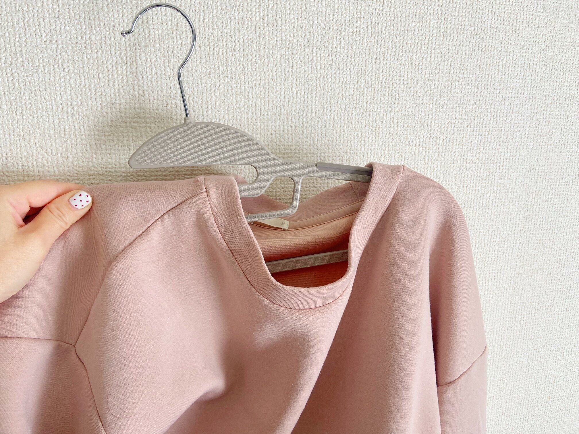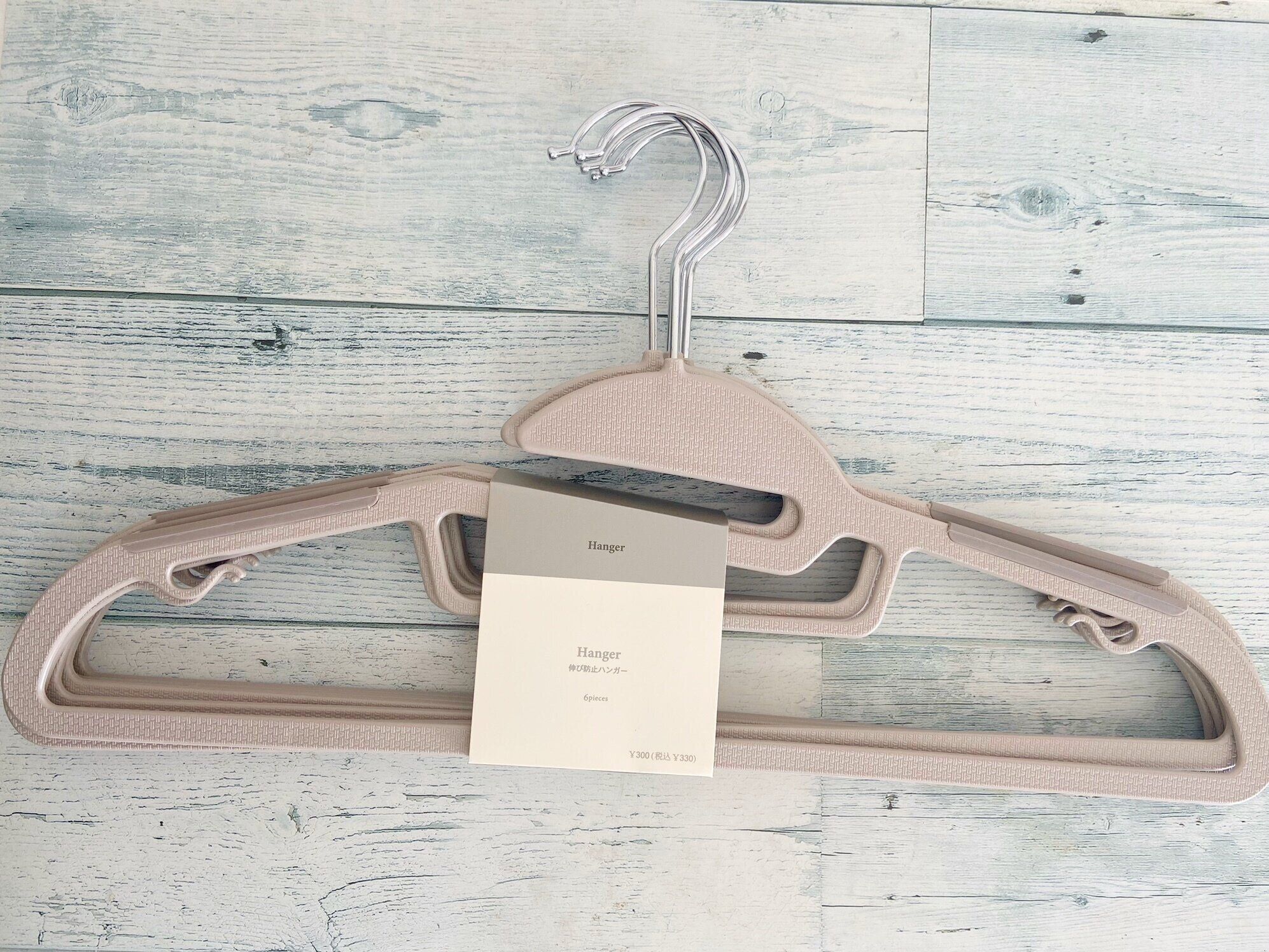 ハンガー自体の厚みが薄いので、クローゼットがすっきりするという工夫もされています。6本で330円とコスパも良いので、おうちのハンガーをすべて交換するというのもアリ!