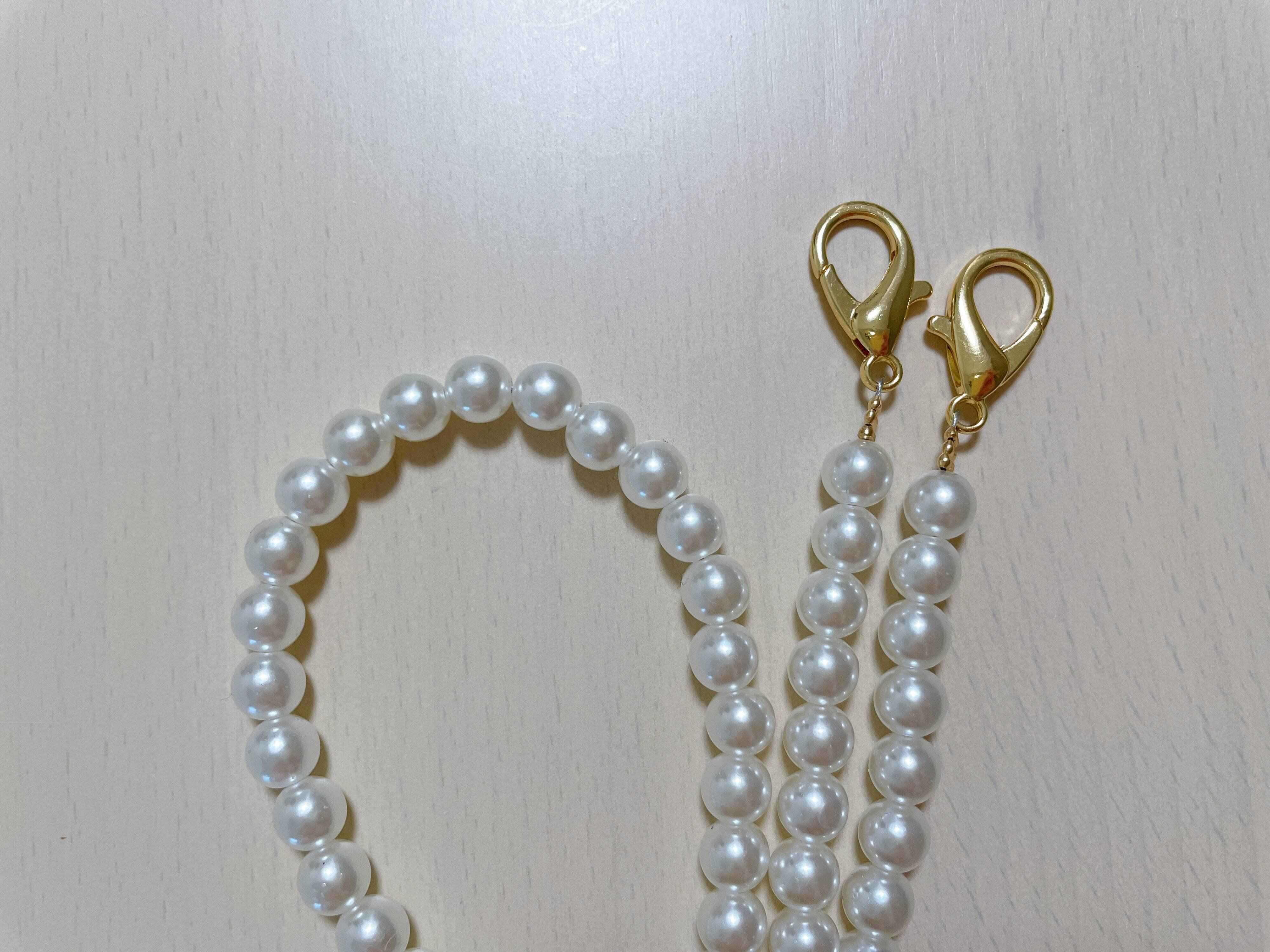 パールをつないでいるのは糸ではなく、ワイヤーのようなしっかりした物に通してあるので丈夫そうです!