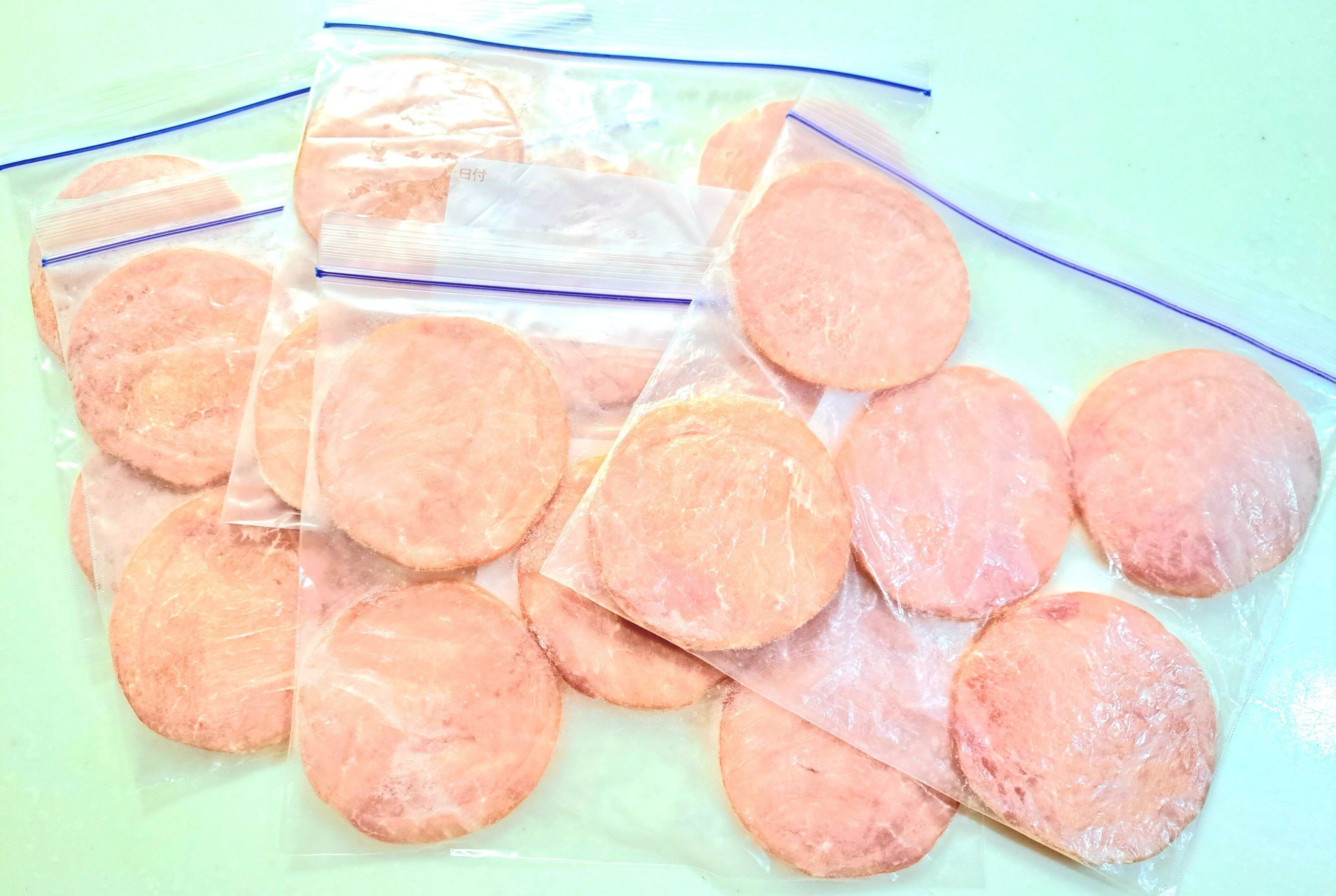 私は、いつもジップロックのMサイズに重ならないように、5枚ずつ入れて冷凍するようにしています。