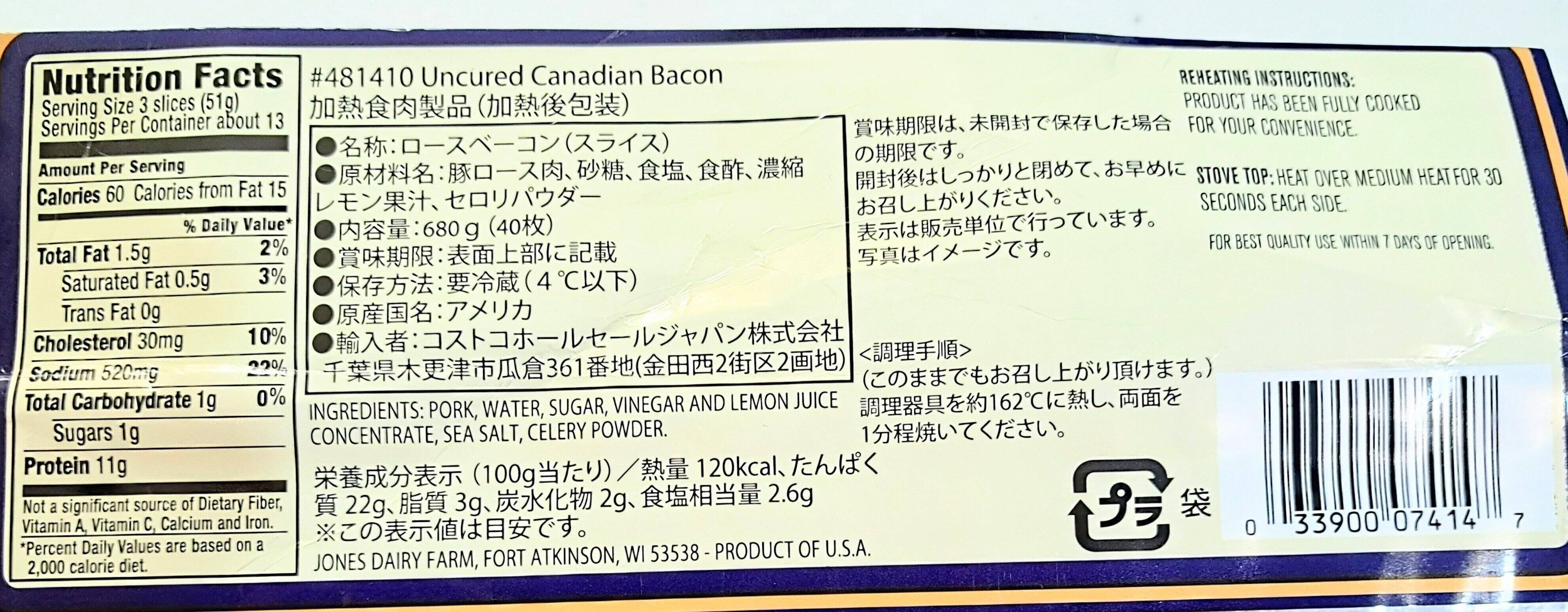 そして、コストコでしか買えない、このカナディアンベーコンでしか味わえないおいしさを求めて、いつも購入しています。