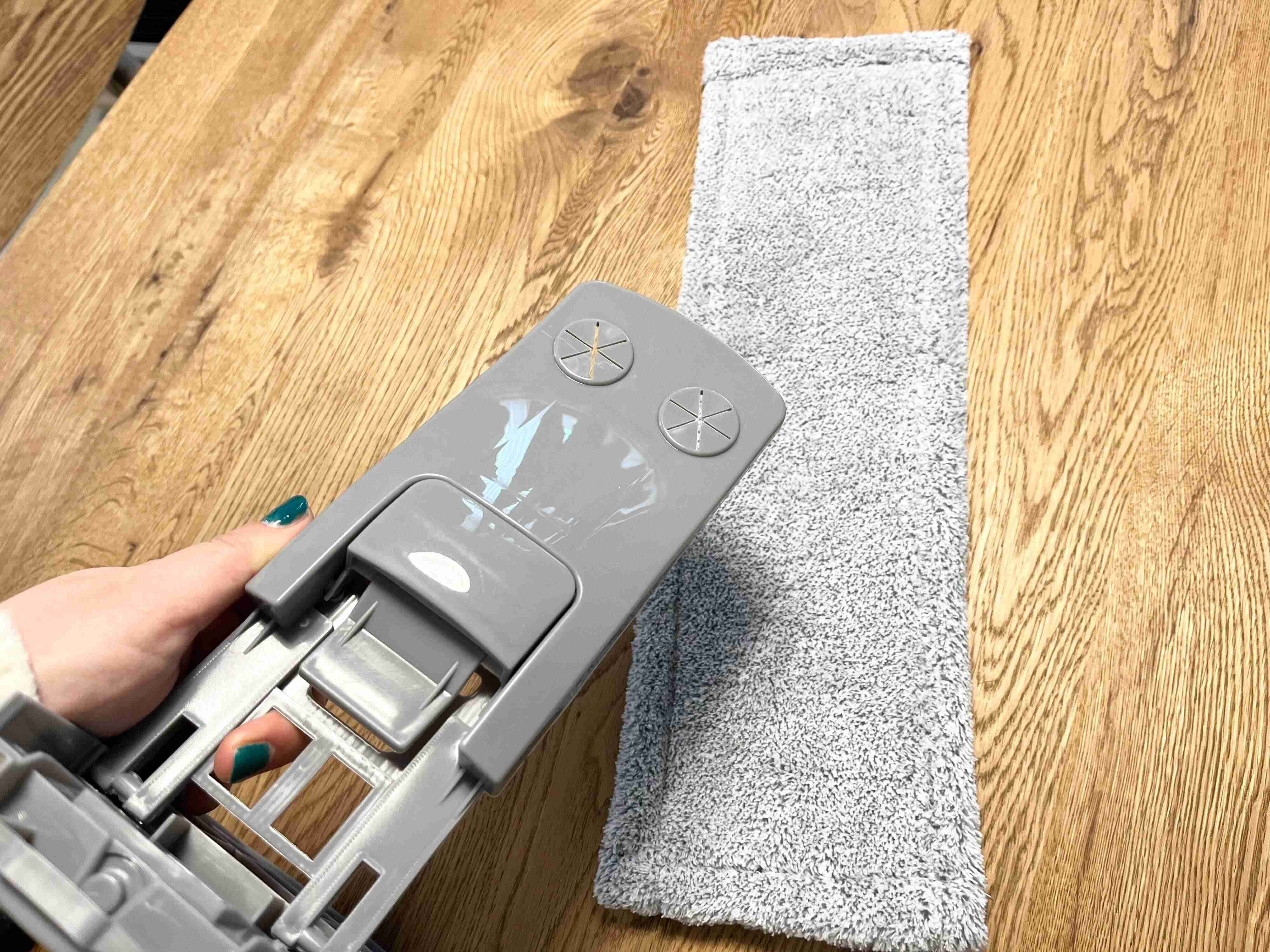 ボタン1つで取りつけ&取り外しができるので、不器用な私でも超簡単に装着でき「これなら床掃除がんばれそう」と感じてしまいました。