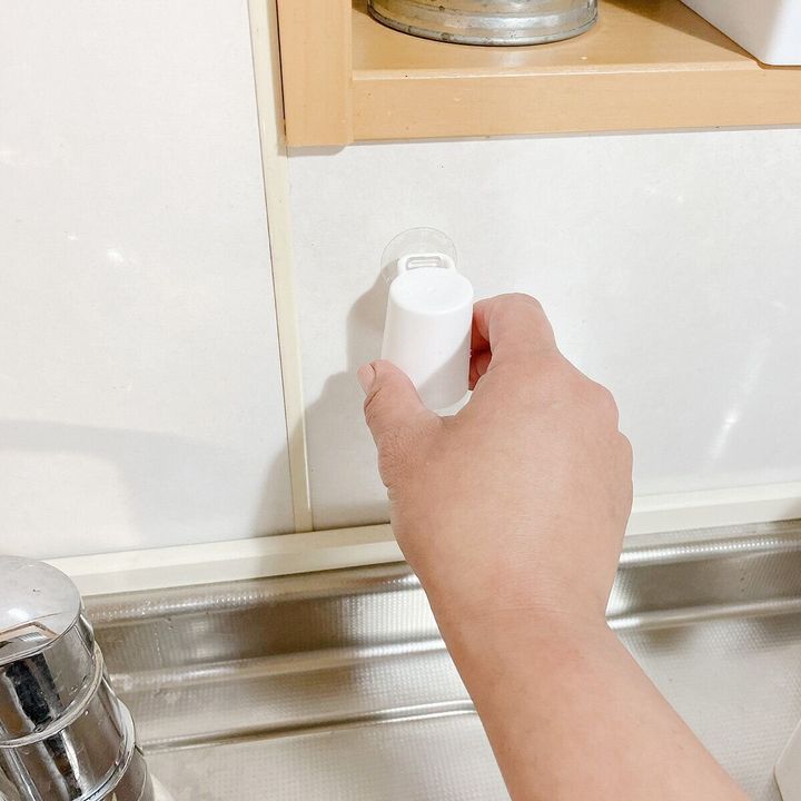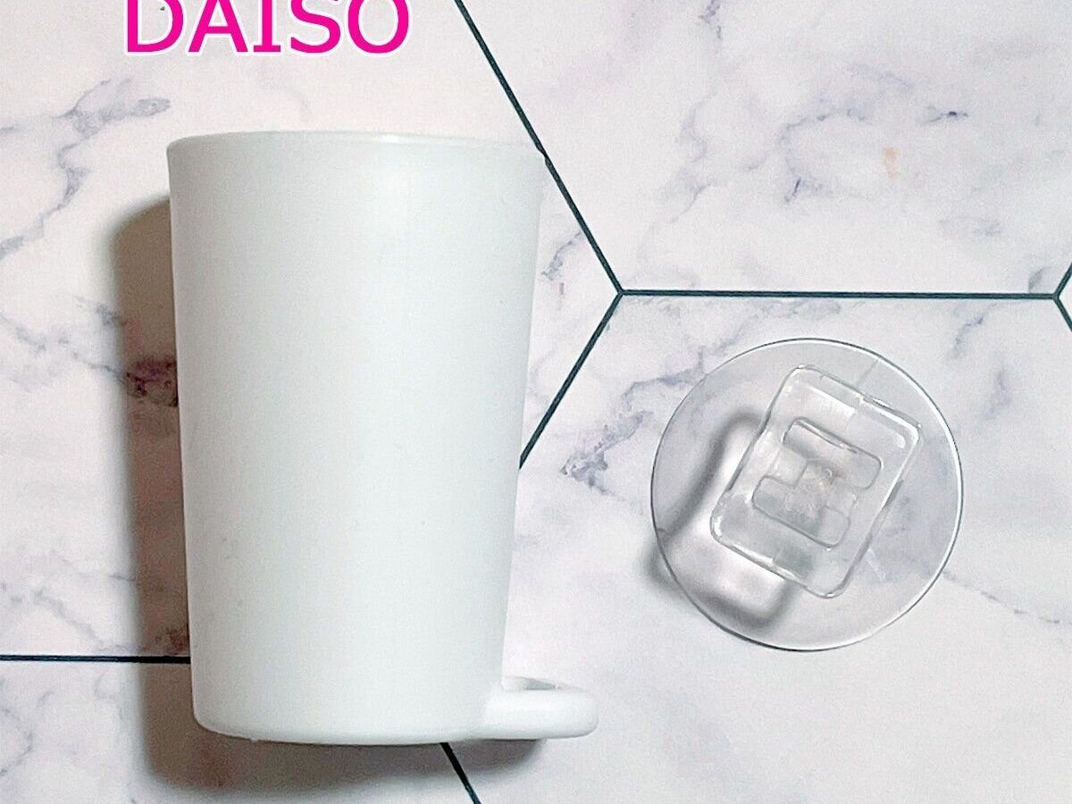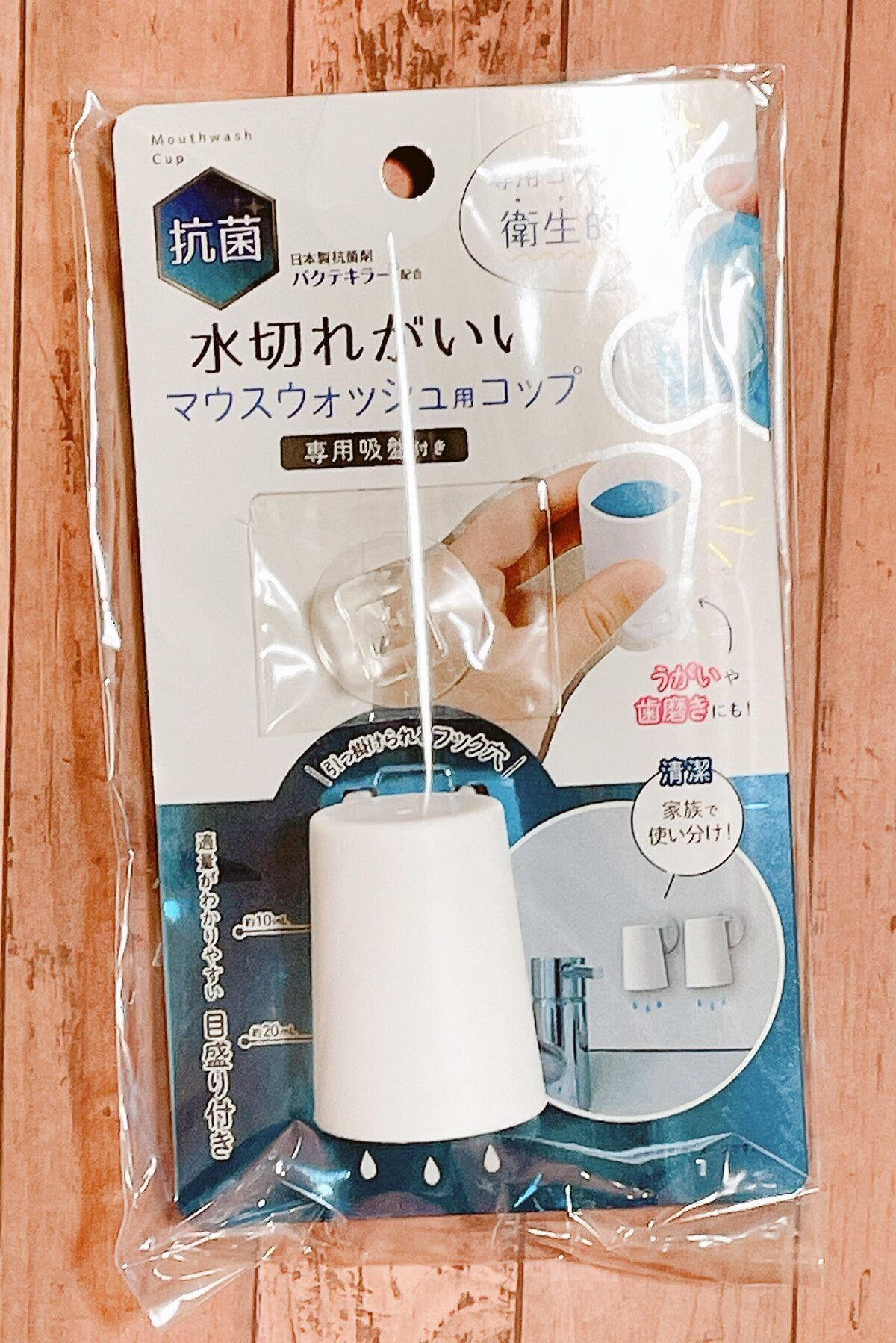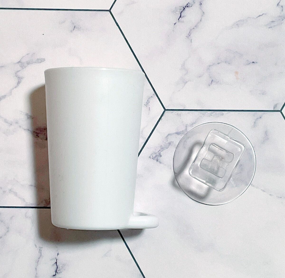 私はキッチンで使うので、コップもキッチンシンク奥の壁につけましたが、洗面所でも小さいコップなので邪魔にならずに収納できそうですよ。