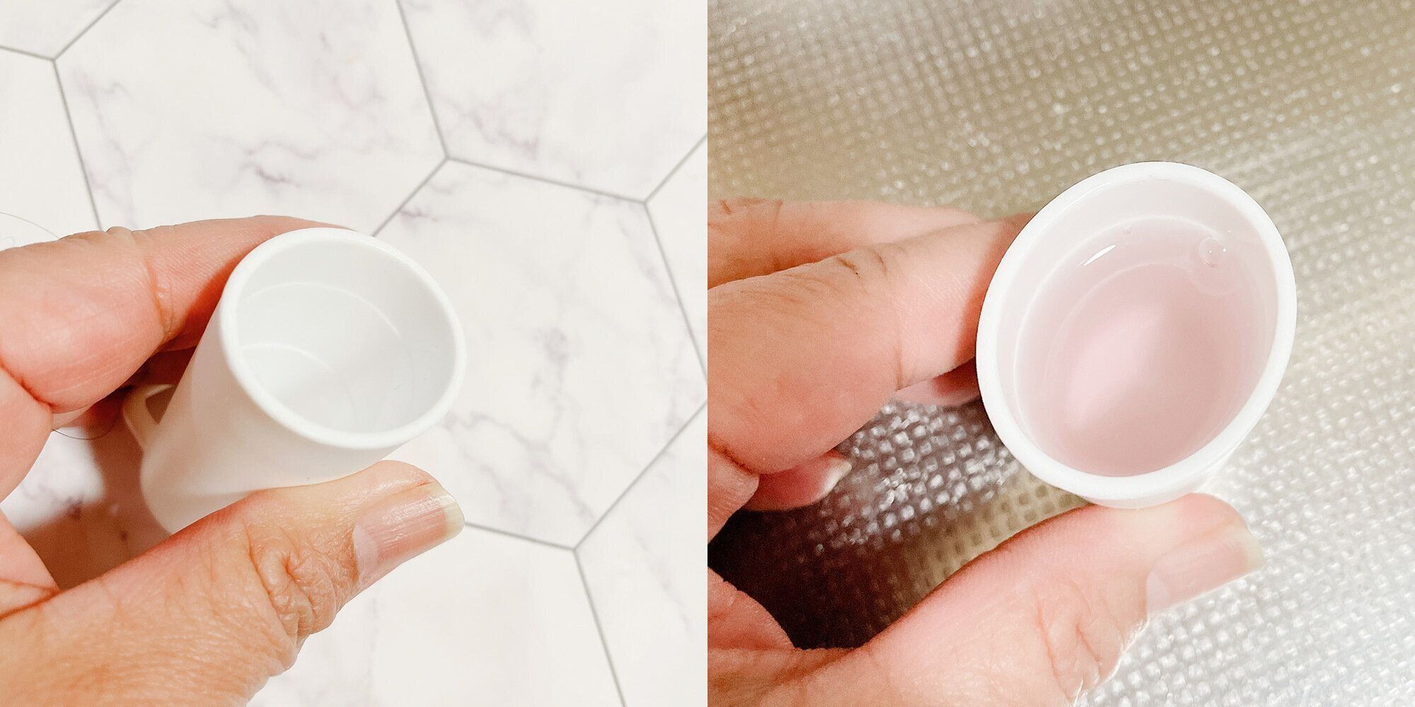 この小さなコップなら、1~2回分程度の水の量なので、ちょうどよさそうです。
