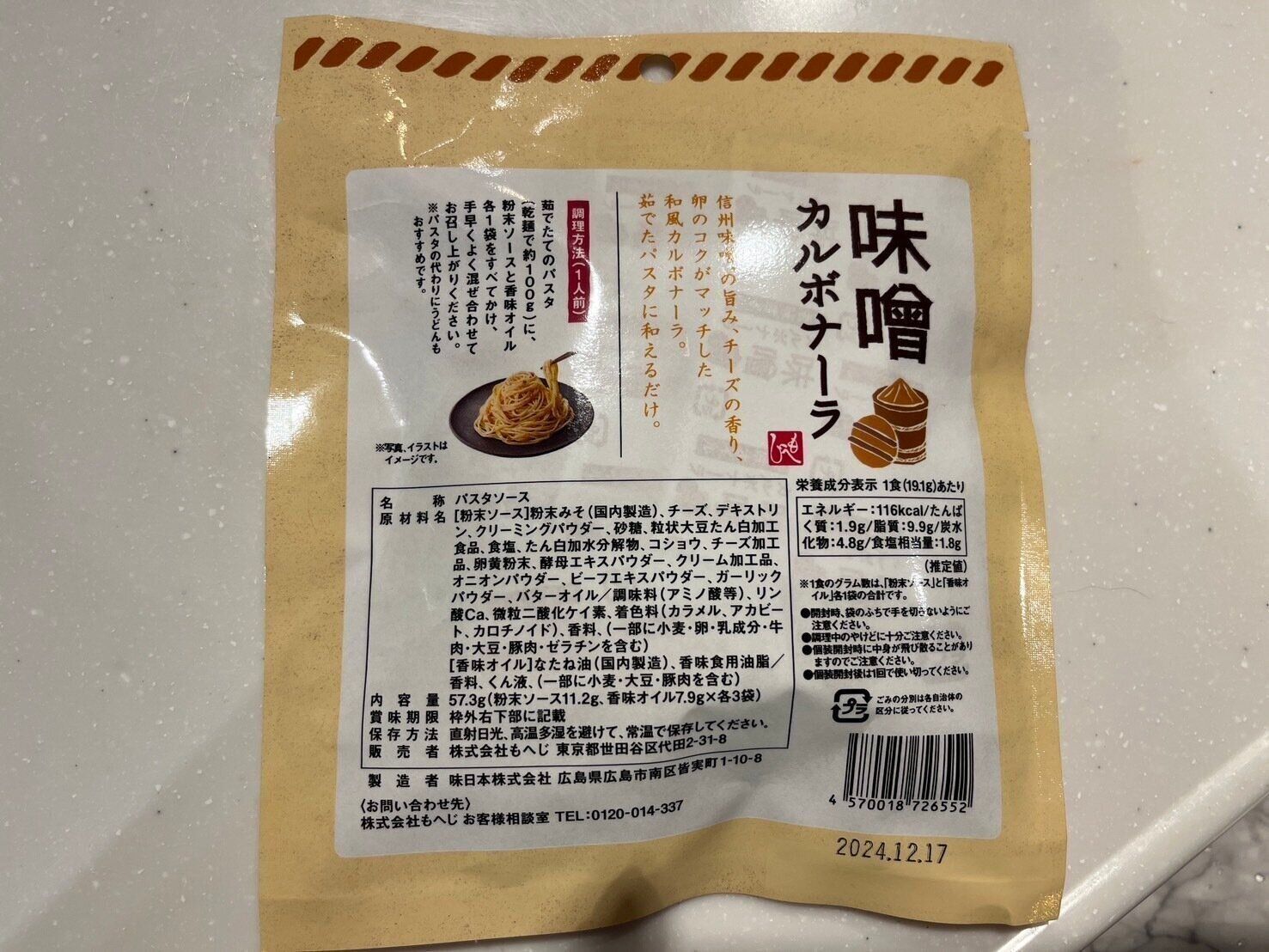 KALDIの味噌カルボナーラは味噌のコクとカルボナーラのクリーミーさが絶妙にマッチした、わが家ではリピ確定のおいしさでした!