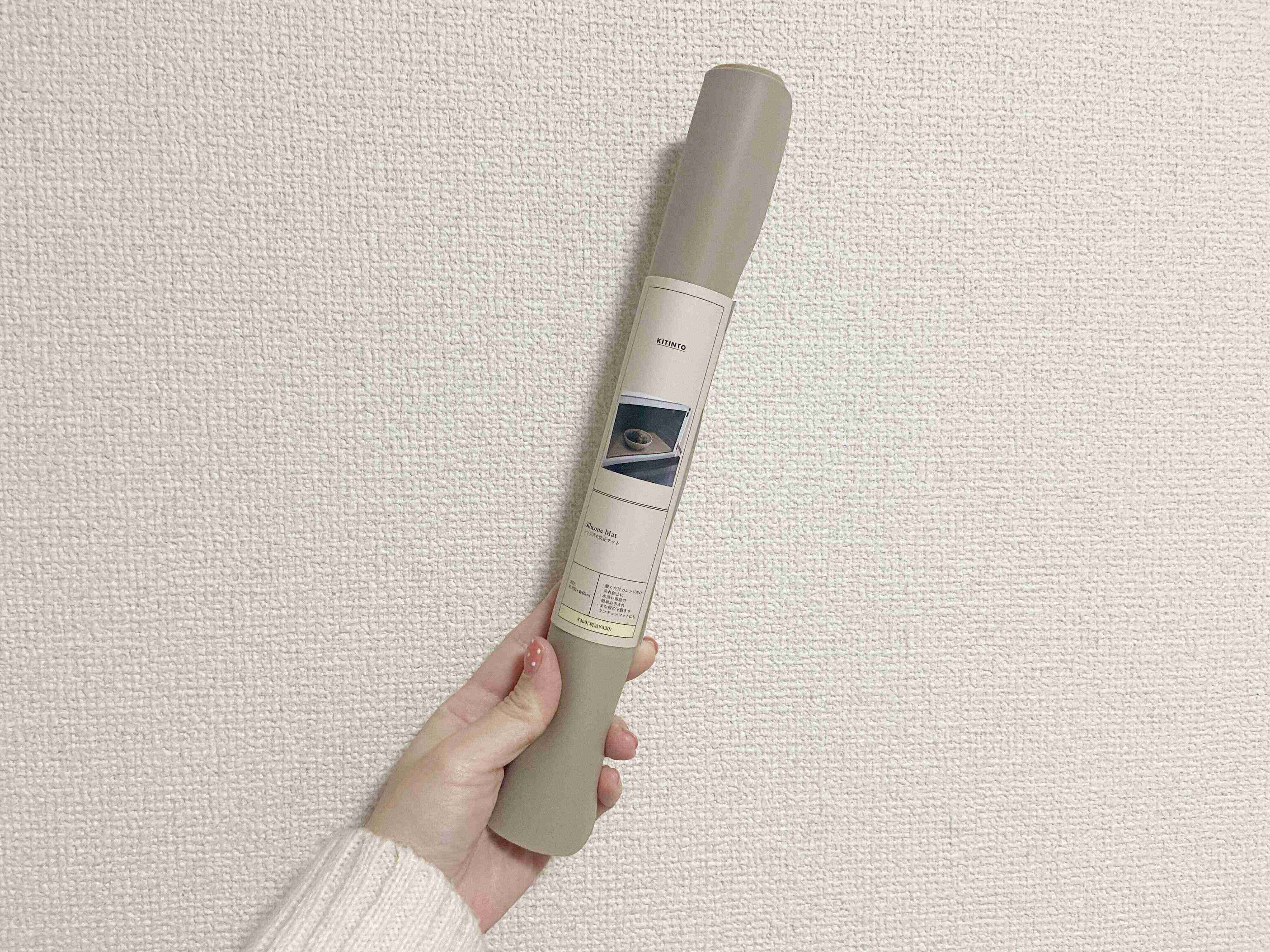 「レンジ汚れ防止マット(30×40cm)/KITINTO」(330円)は、その名のとおり電子レンジの汚れを防止することができるキッチンアイテム。カラーの展開はアイボリーのみ。一見ただのふにゃっとしたマットですが、電子レンジに敷いているかいないかで普段のお掃除の楽さが全然違います。