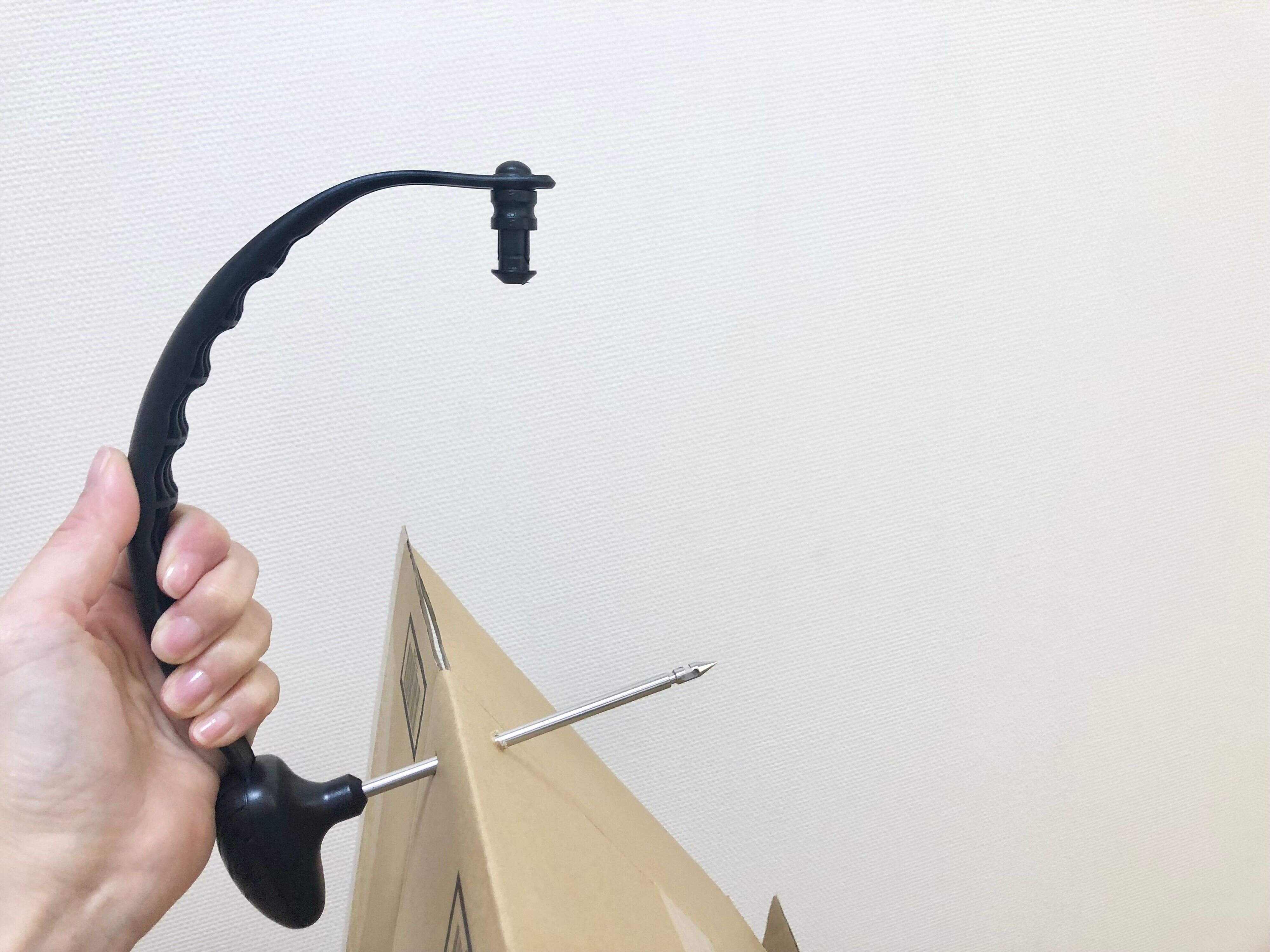 使い方は「段ボールストッカー」の黒いキャップを外して先端を出してから、段ボールをひたすら突き刺していくだけでOK!