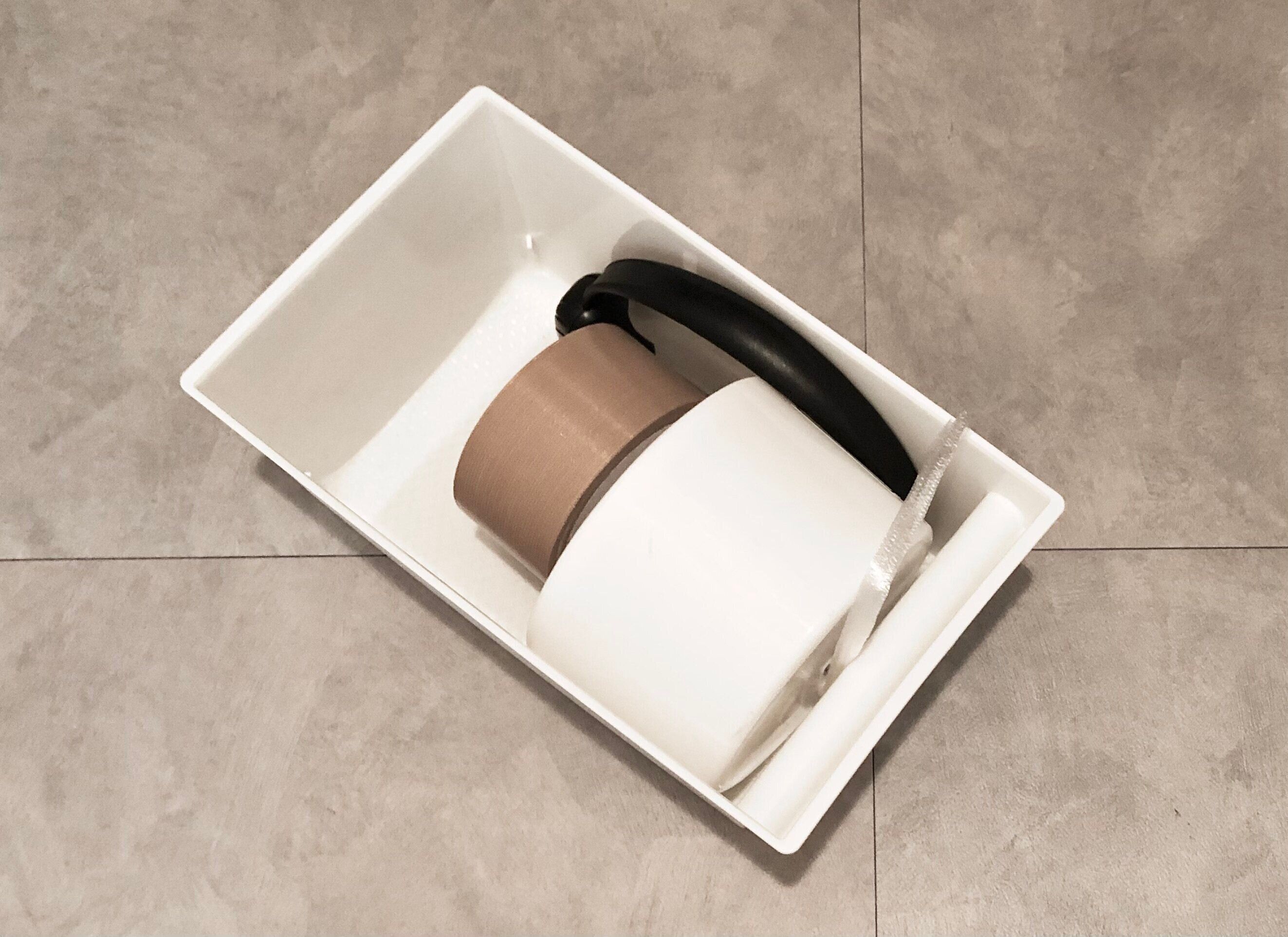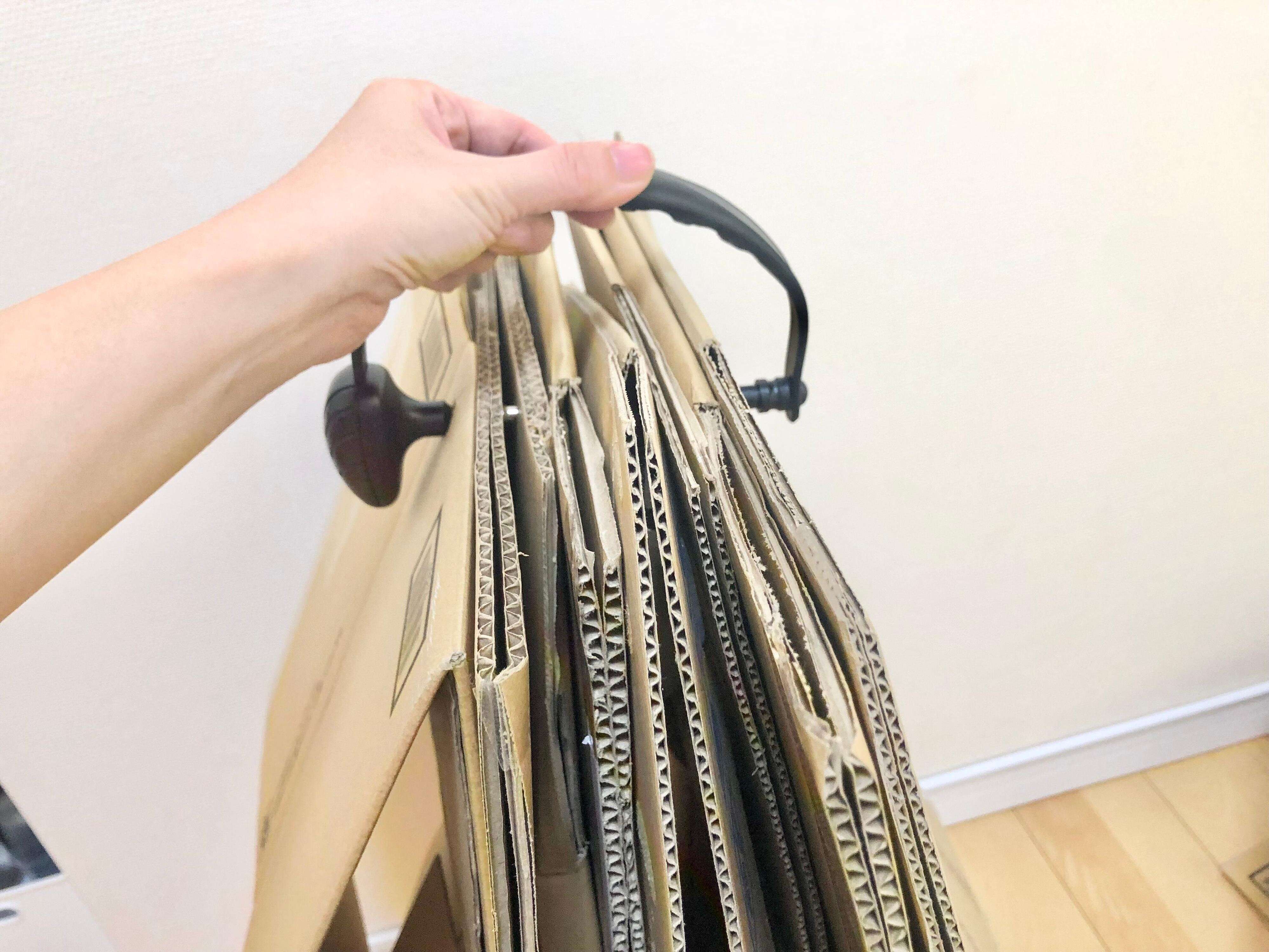 「段ボールストッカー」自体がグリップのようになっているので、このまま手軽に持ち運ぶこともできるんですよ。