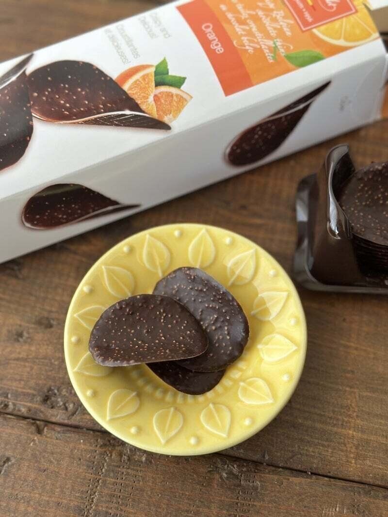 とっても薄いチョコレートを、チップスにような形にしてあり、そのまま食べてもパリッとした食感が楽しめます。