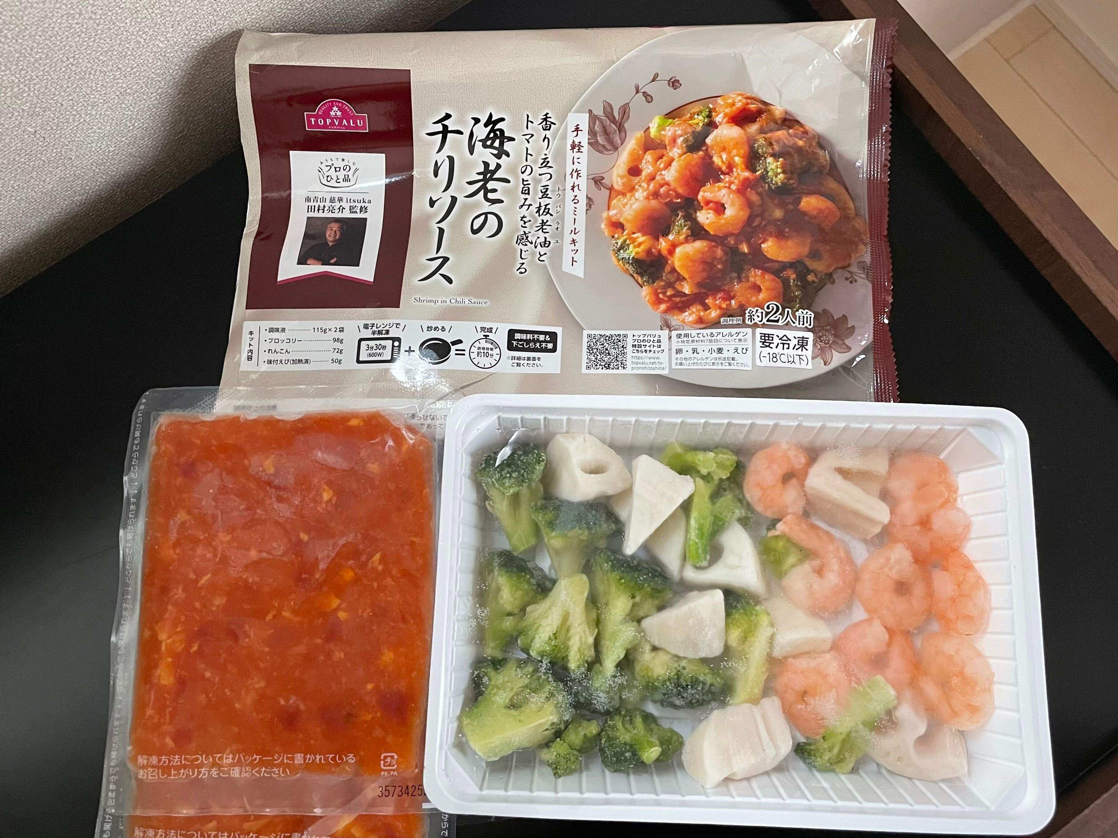 今回購入したのは、イオントップバリュの冷凍食品「プロのひと品 田村亮介シェフ監修海老のチリソース」 1,058円です。