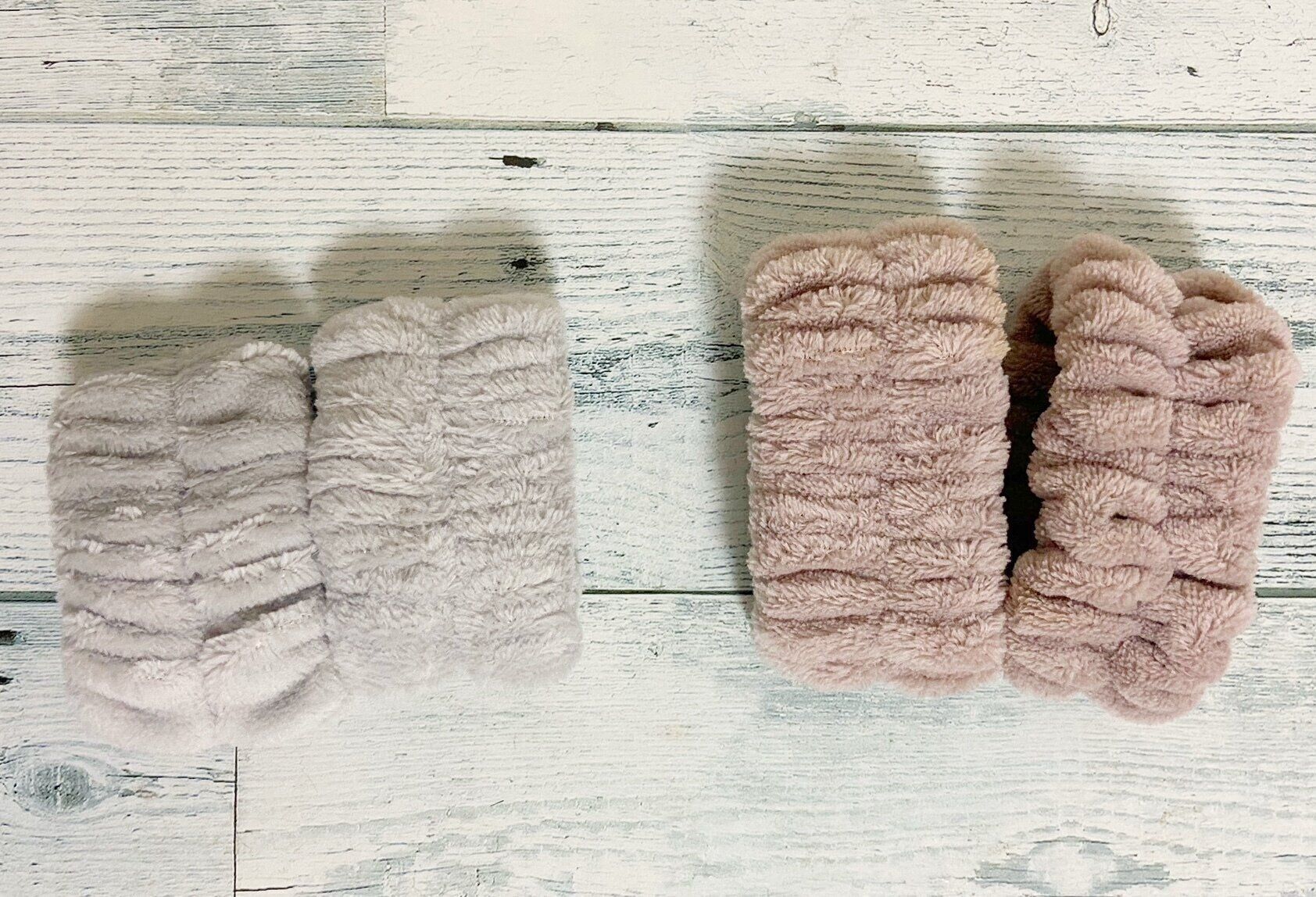 左が新バージョン、右が旧バージョンの吸水アームバンド。ぱっと見はどこが進化したかわからないですよね。まず、カラーバリエーションが少し変わっています。筆者が購入したグレーは旧デザインでは展開されていなかったカラーです。