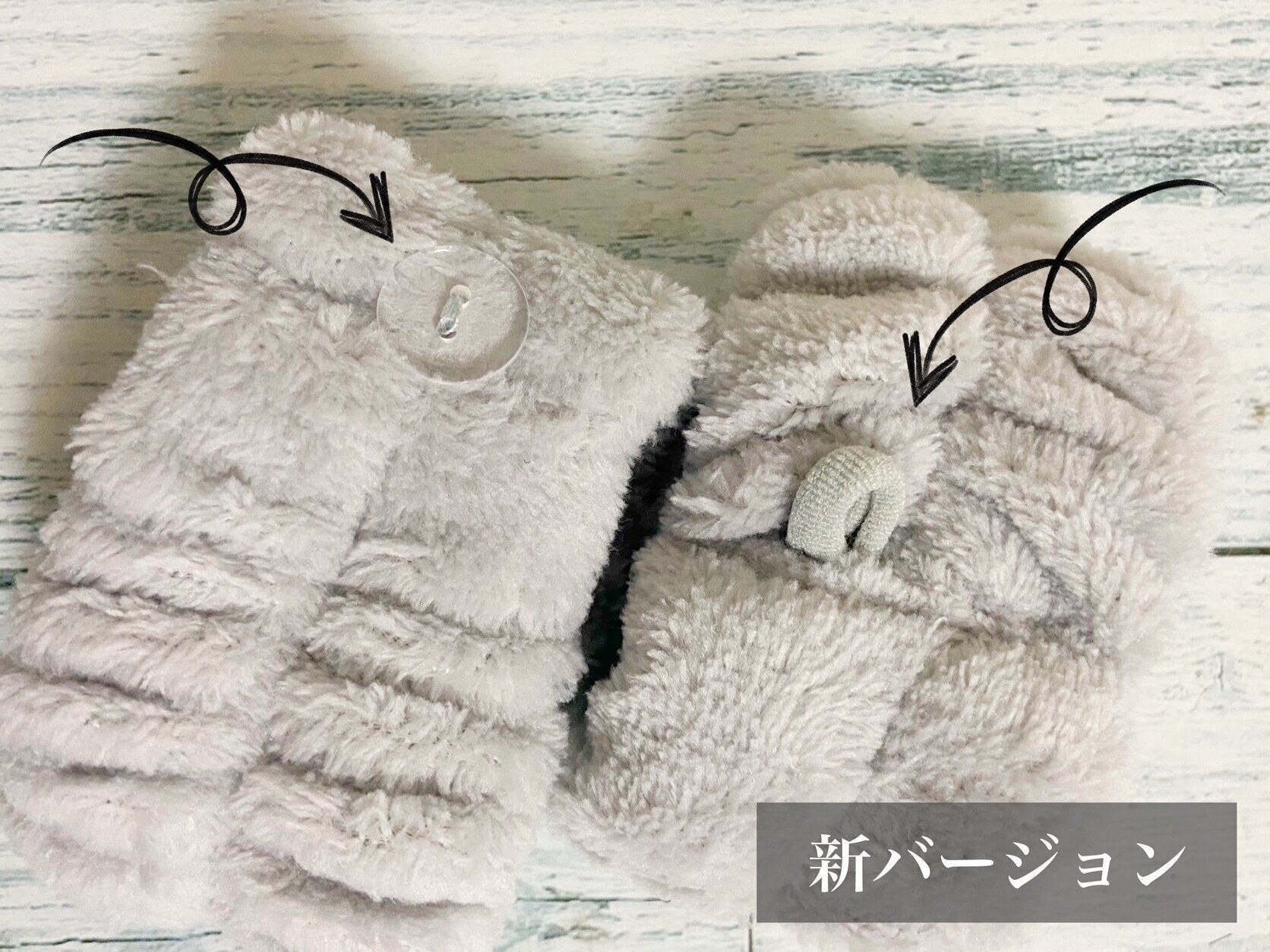 新バージョンの小さなボタンがついていることで、セットにして収納することが可能になりました。確かに旧バージョンは収納するときバラバラになってしまっています。「そういうものだ」と思っていたので、特に不満などは持っていなかったのですが、新バージョンを使ってみると便利さに感激!