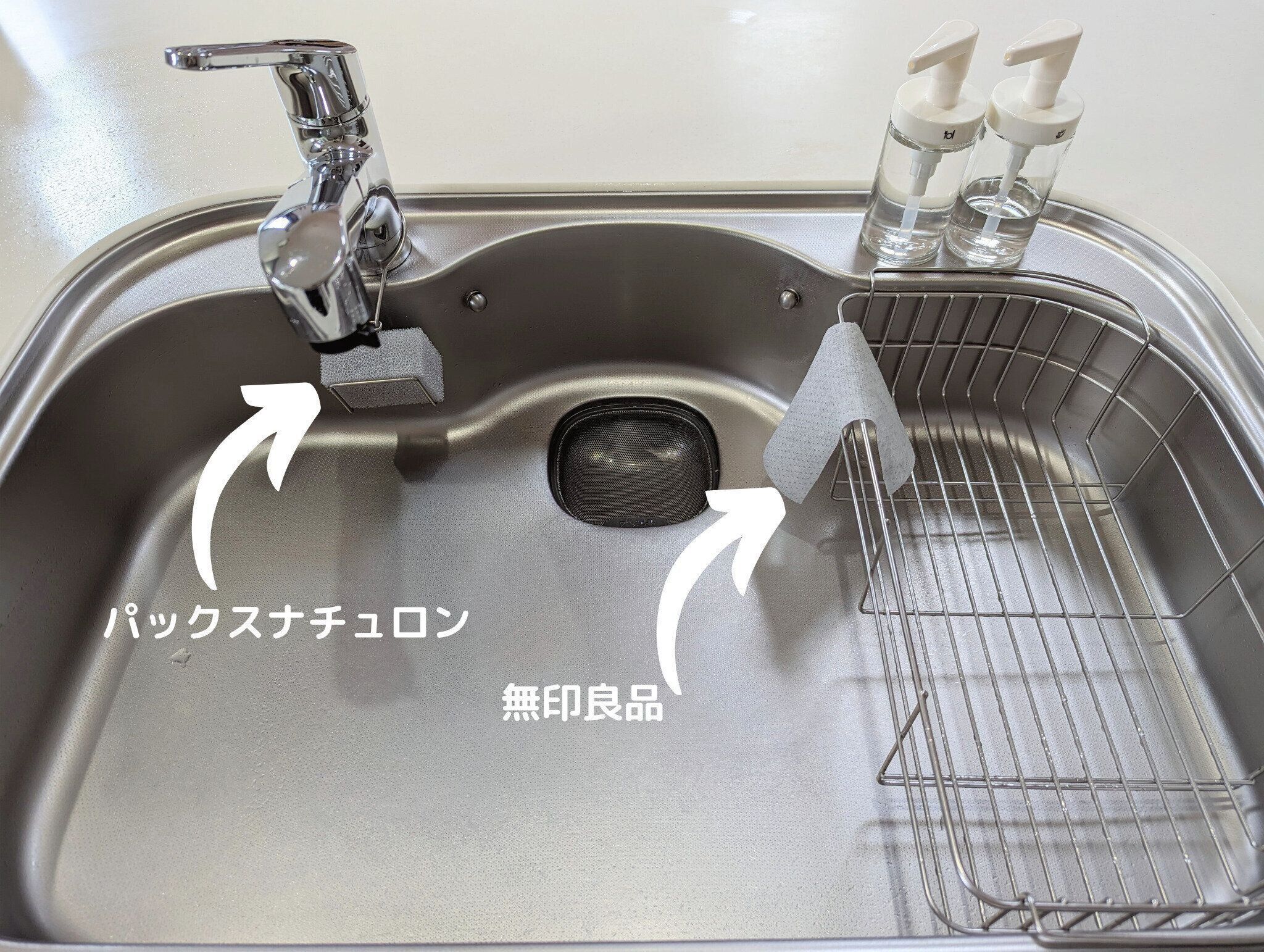 シート状でつまんで洗えるので、五徳や水栓の根元なんかのこまかい部分にも使いやすいし、置く場所や管理の手間いらずなのも助かっています。