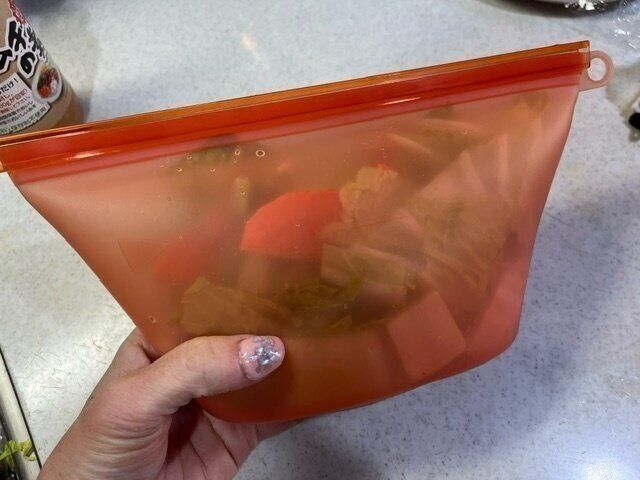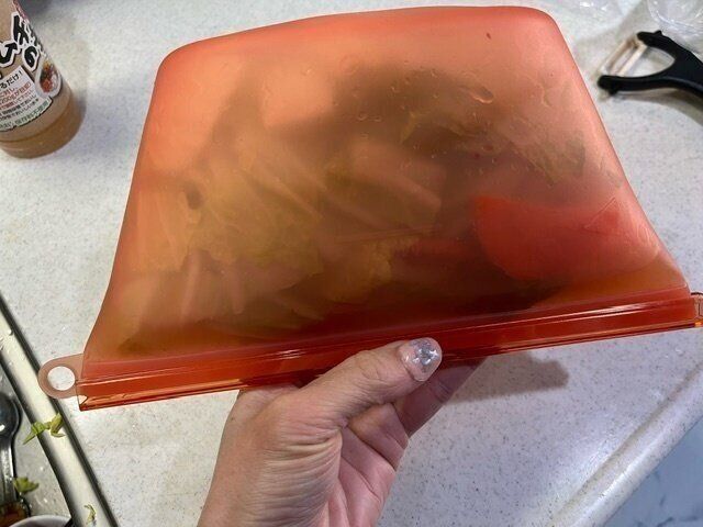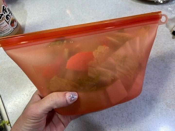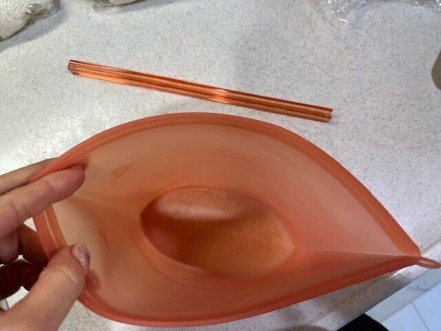 オレンジがかわいいシリコン製の保存袋。じつはシリコン製の保存袋は前から気になっていたので