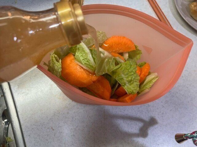 水キムチをつくります。白菜、大根、にんじんを適当な大きさにカットしてシリコン保存袋へ。