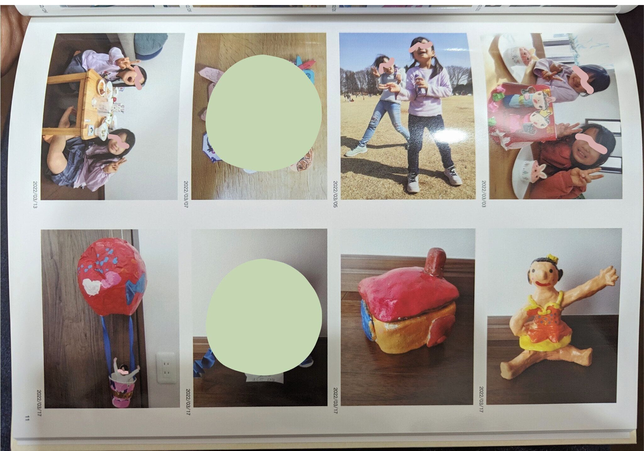 わが家では、毎年1月に前年分のイヤーアルバム(1年分の写真データを自動で一冊にまとめてくれるサービス)を注文するのが恒例なのですが、作品の写真もこのアルバムに自動的に取り込まれる仕組み。