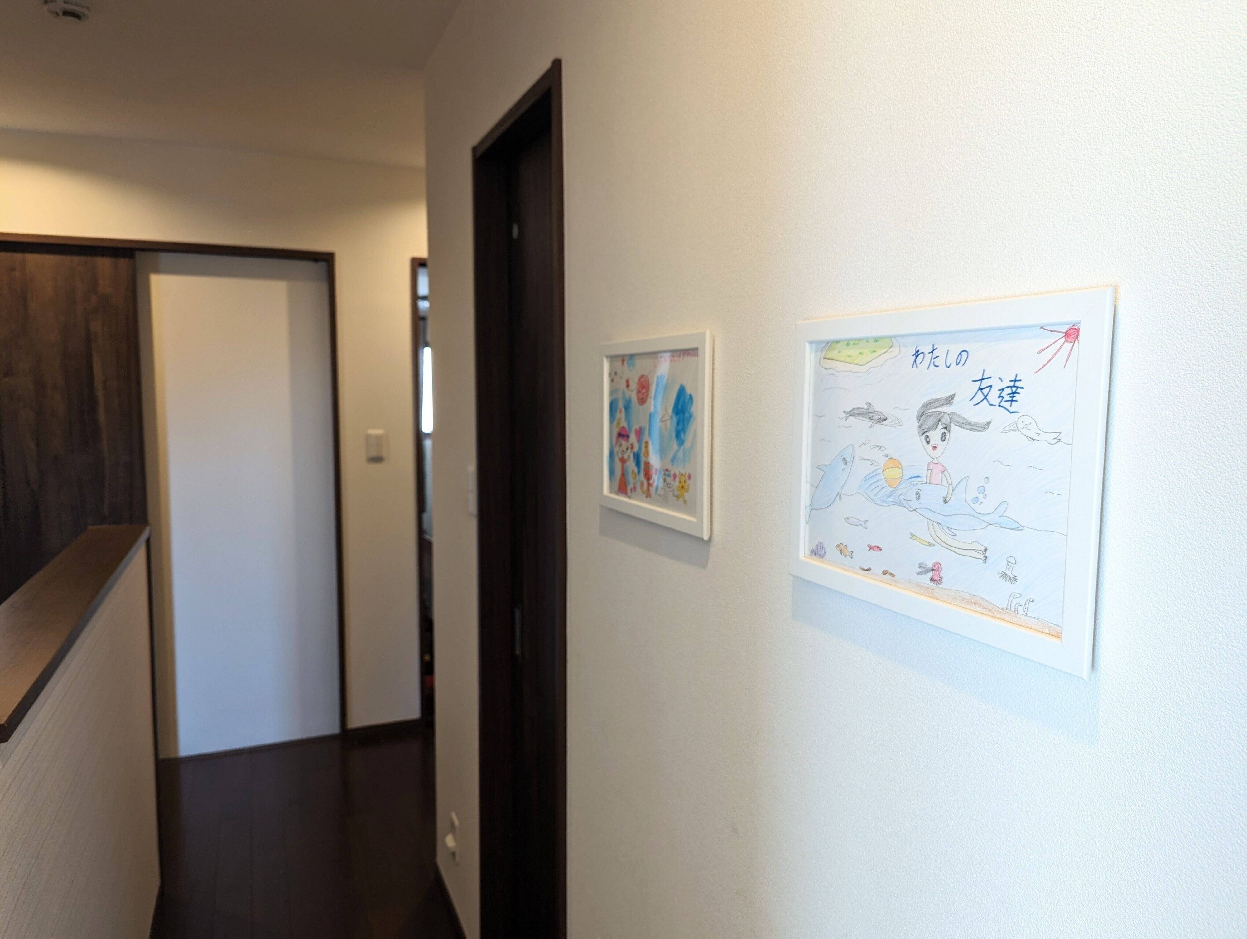 その後は、それぞれの子ども部屋へ。絵でも立体作品でも、自分の部屋なら自由に飾ってOKにしています。