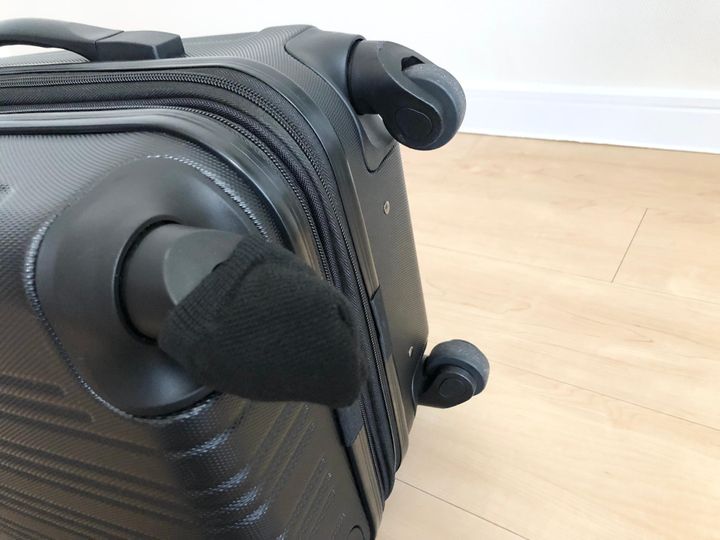 また1週間ぐらいの旅行に使用している少し大きめのキャリーバッグの車輪にも使用してみましたが、こちらも難なくOK!