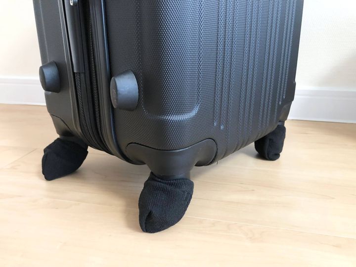 実は謎の靴下とは、旅行などに使用するキャリーバッグの車輪専用の靴下だったんです!