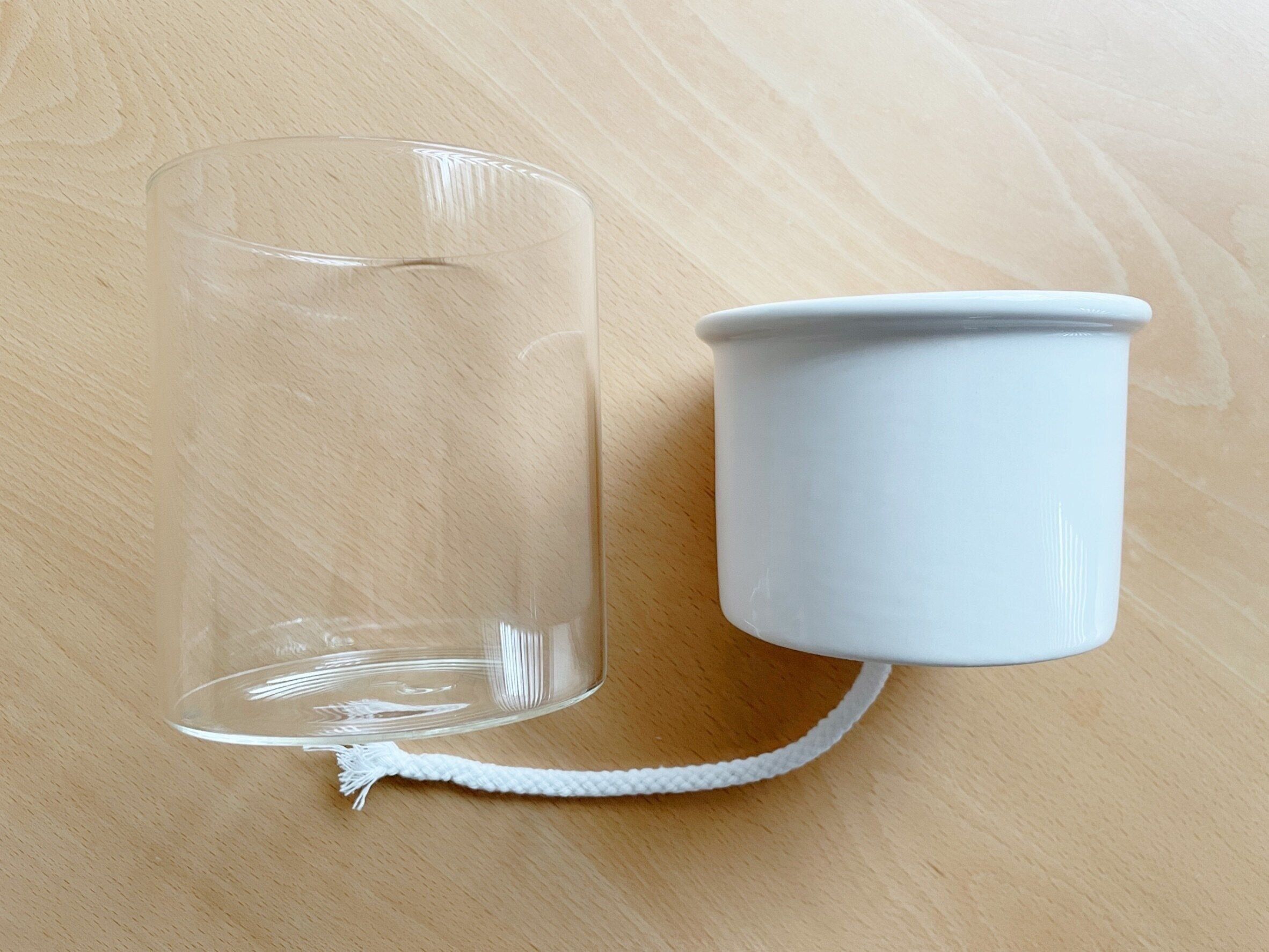 2個セットになったこちらの鉢は「自動給水ポット4号(880円)」。アウターポットとインナーポットがセットになった鉢で、インナーポットに紐が内蔵されています。この紐がアウターポットに溜まった水を自動で吸い上げてくれるという便利なアイテム。