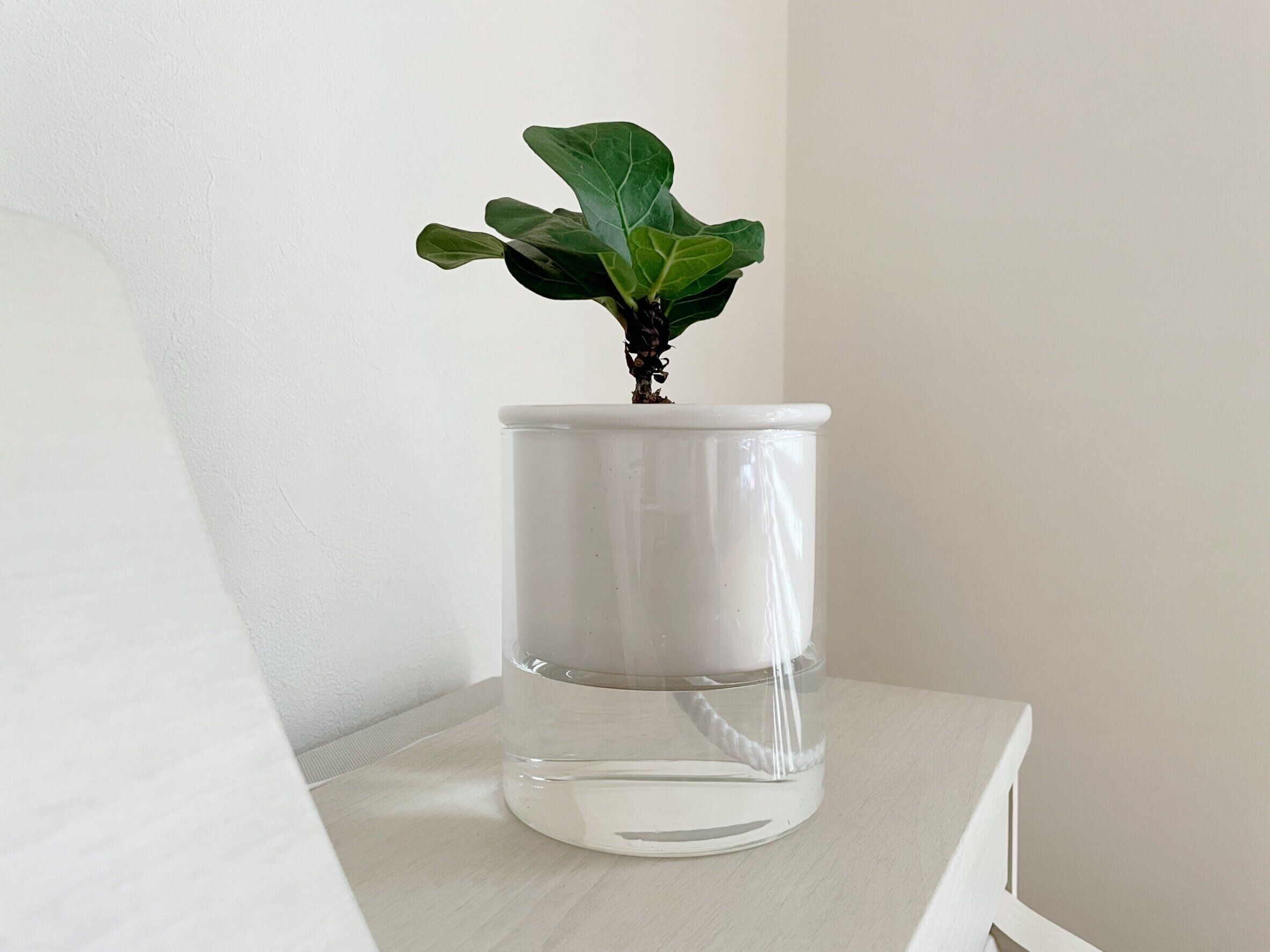 ホワイトのインナーポットとクリアのアウターポットの組み合わせなので、見た目がとってもすっきりして見えて素敵!自動給水してくれるだけでなく、クリアで水の残量が見えるので水を継ぎ足すタイミングも簡単にわかるので管理が楽ちんです。