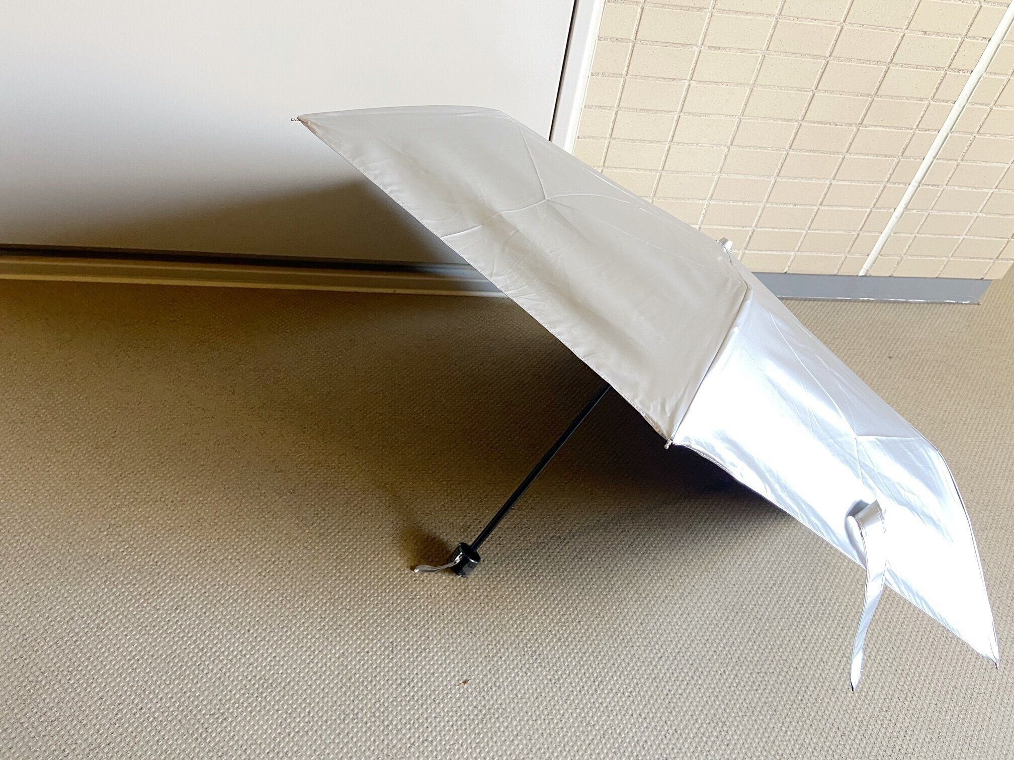 おすすめの紫外線対策グッズ1つ目が「晴雨兼用折傘メタリック」(1,650円)です。その名の通り、日傘としてだけでなく、雨の日にも使える兼用の折りたたみ傘です。カラーはシルバーとゴールドの2色展開。
