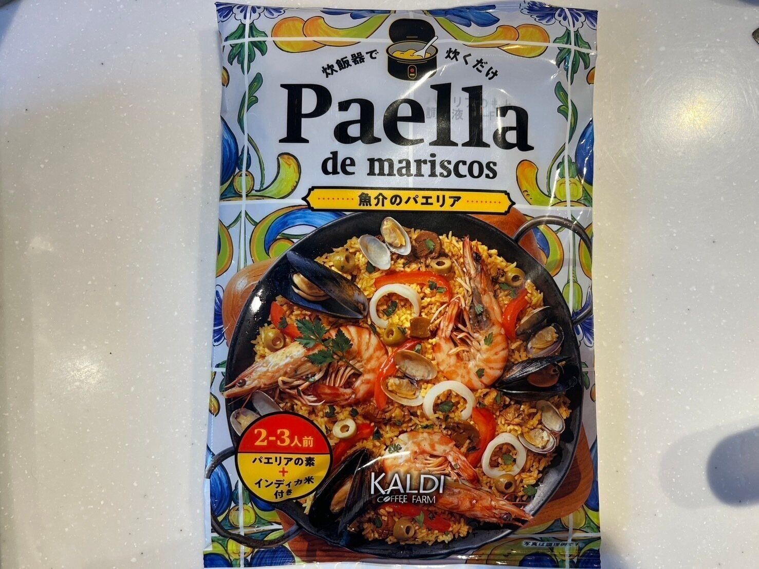 1袋で2〜3人前の量のパエリアを作ることができます。賞味期限は、購入日から約半年後でした。