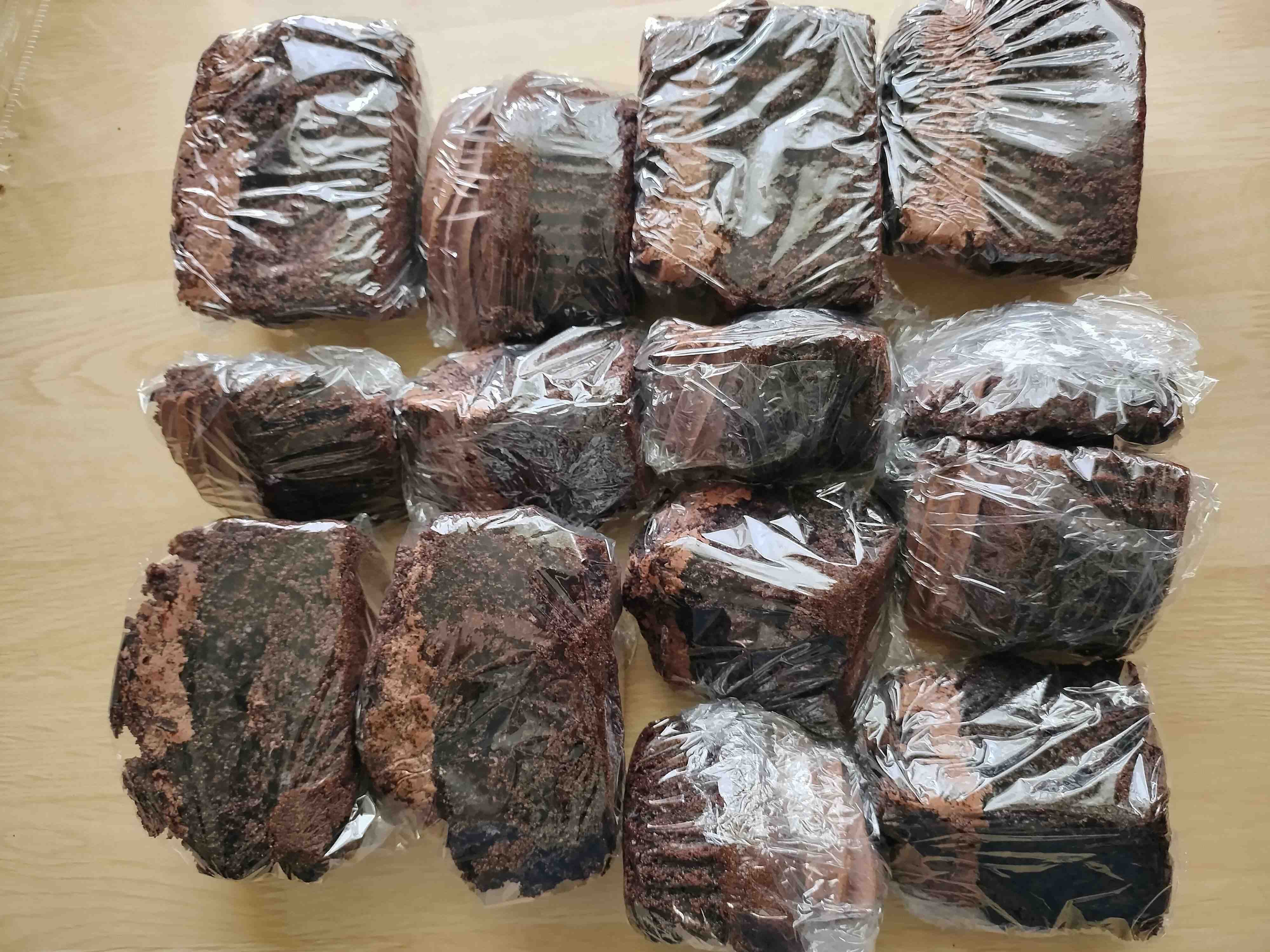 ボリューミーなケーキなので、娘と夫と3人で1つシェアしたあとは、残りを冷凍することにしました。1/2でカットするか1/4でカットして冷凍するか悩んだのですが、1/4に切ると生地が少しボロボロになってしまうので生地をまとめながらラップで包みました。