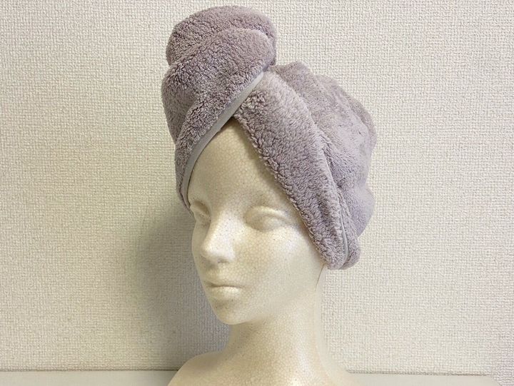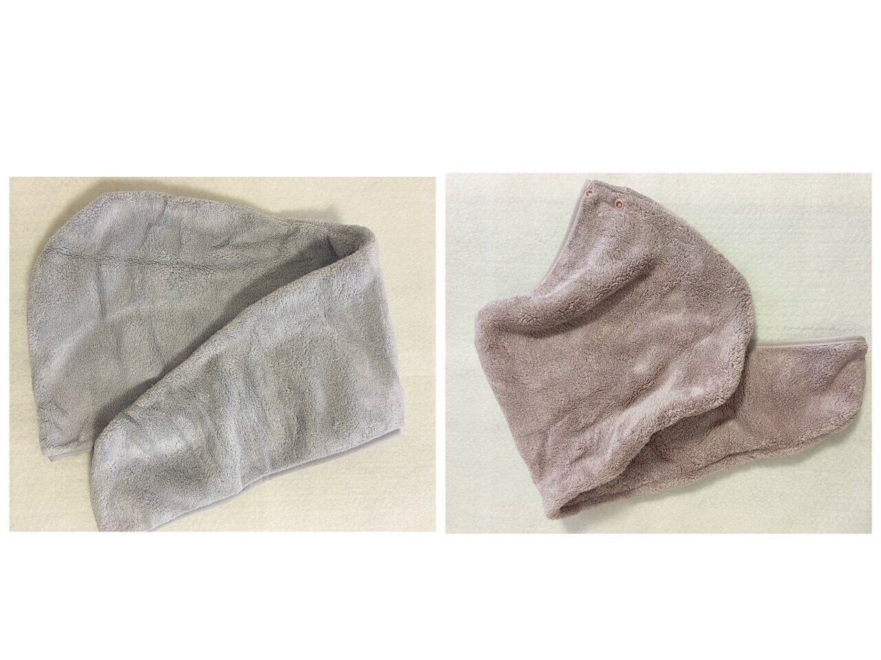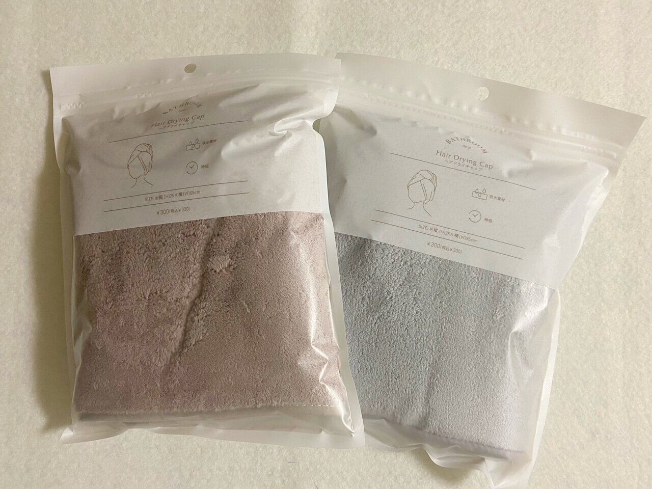 「ヘアドライキャップ」(330円)は女性を中心に人気の3COINSのヒットアイテムのひとつ。ふつうのタオルよりも吸水性に優れているので、ドライヤーの時間を短縮することが叶う時短アイテムです。髪の毛の長い筆者はデイリー使いしたいので2つまとめ買い!