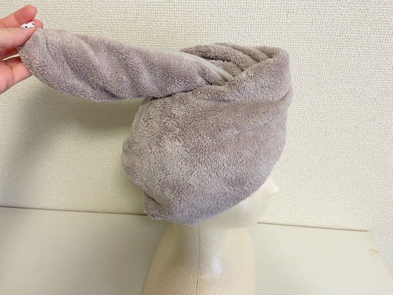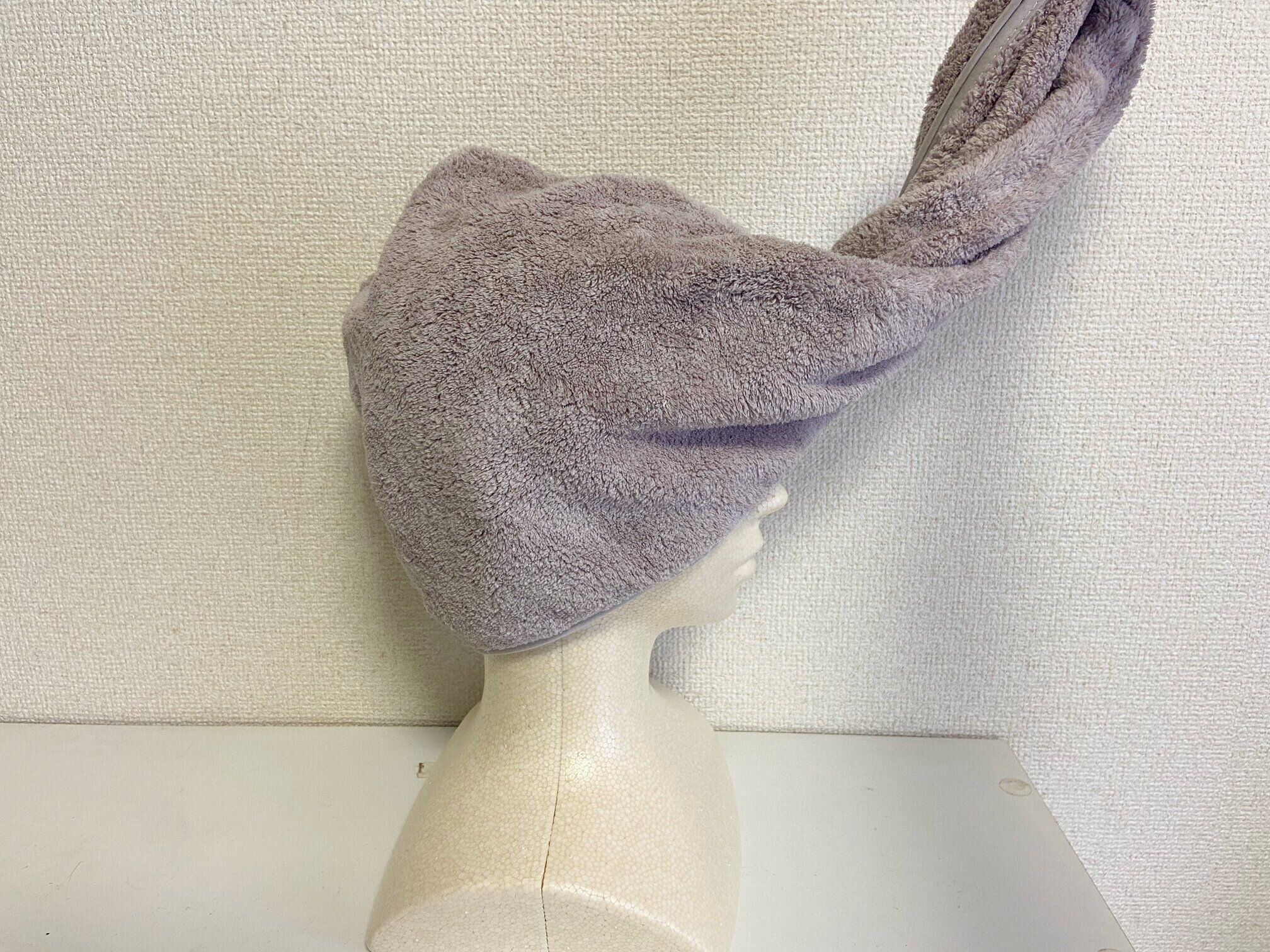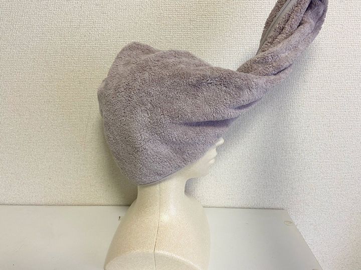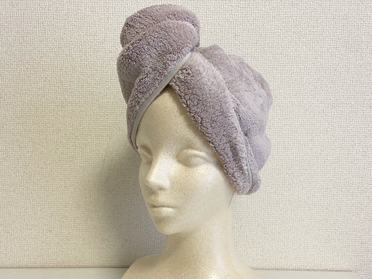 「ヘアドライキャップ」(330円)は女性を中心に人気の3COINSのヒットアイテムのひとつ。ふつうのタオルよりも吸水性に優れているので、ドライヤーの時間を短縮することが叶う時短アイテムです。髪の毛の長い筆者はデイリー使いしたいので2つまとめ買い!