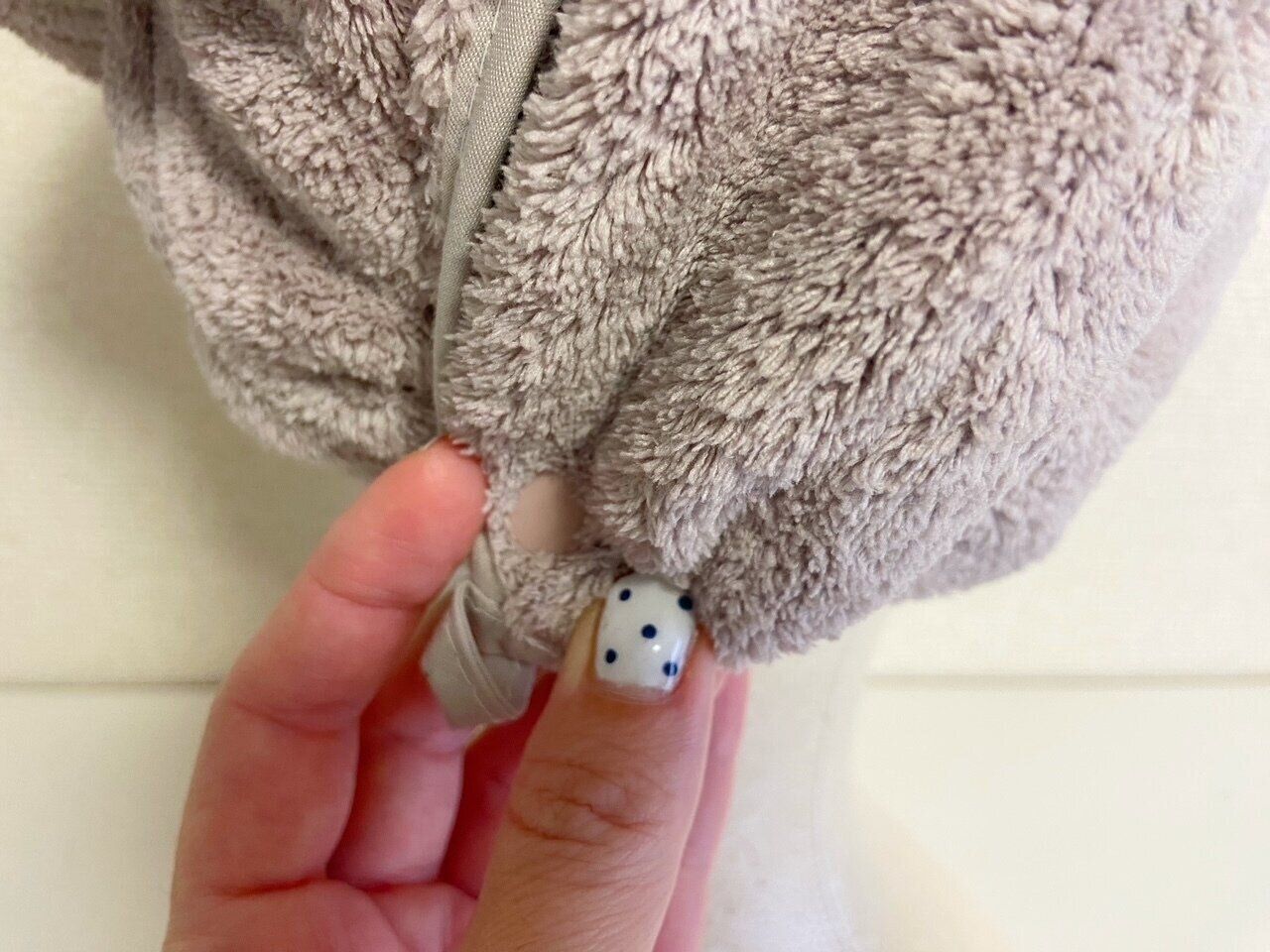 ドライヘアキャップには小さなループがついていて、このループを使えばフックなどに引っかけて乾かすことも可能です。旅行先などで使用したときも助かります。