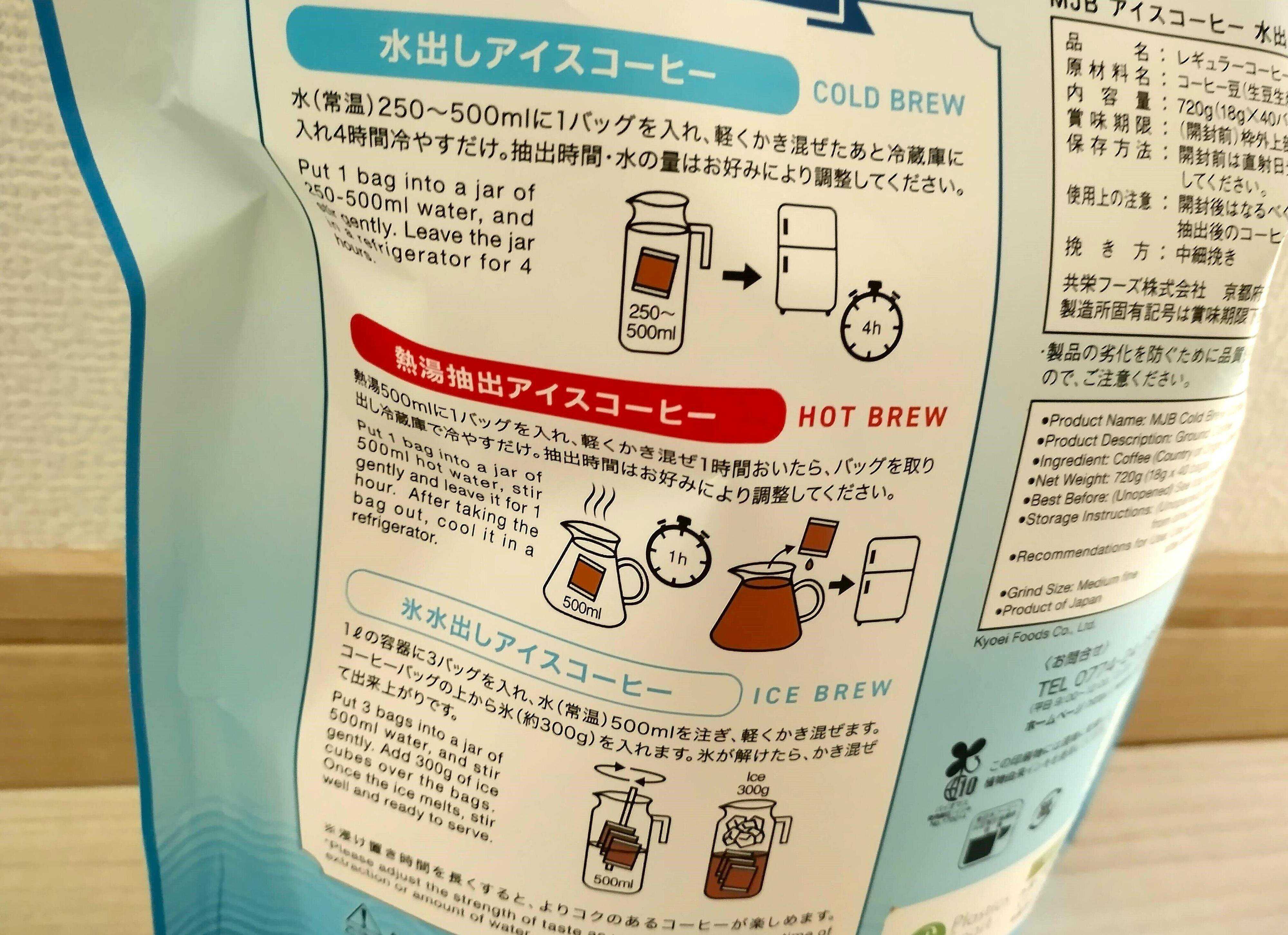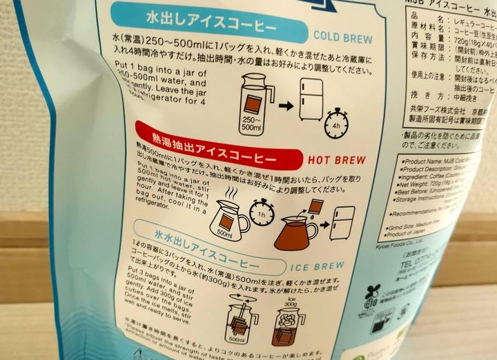「MJBアイスコーヒーコールドブリューバッグ」の作りかたは3種類