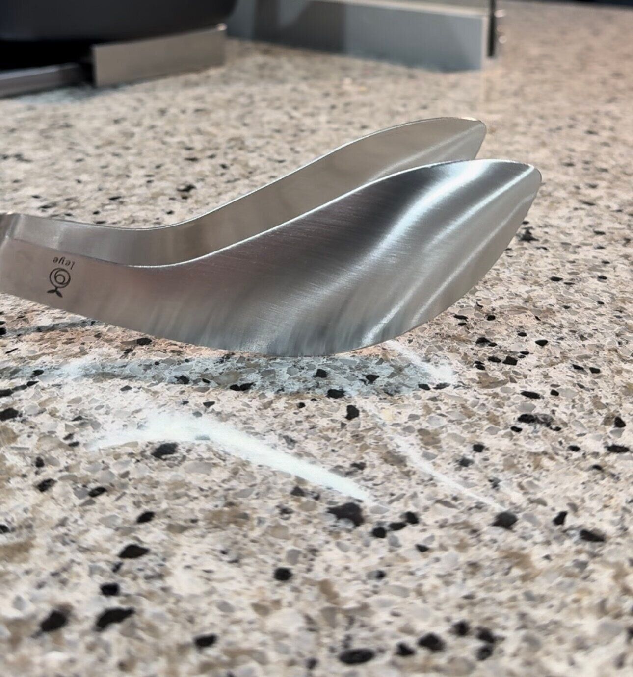 ゆでた鶏肉など熱いけどすぐ切りたい物にも使えるし、置いたときにトングの先が下につかないから、キッチンが汚れないのも最高です!