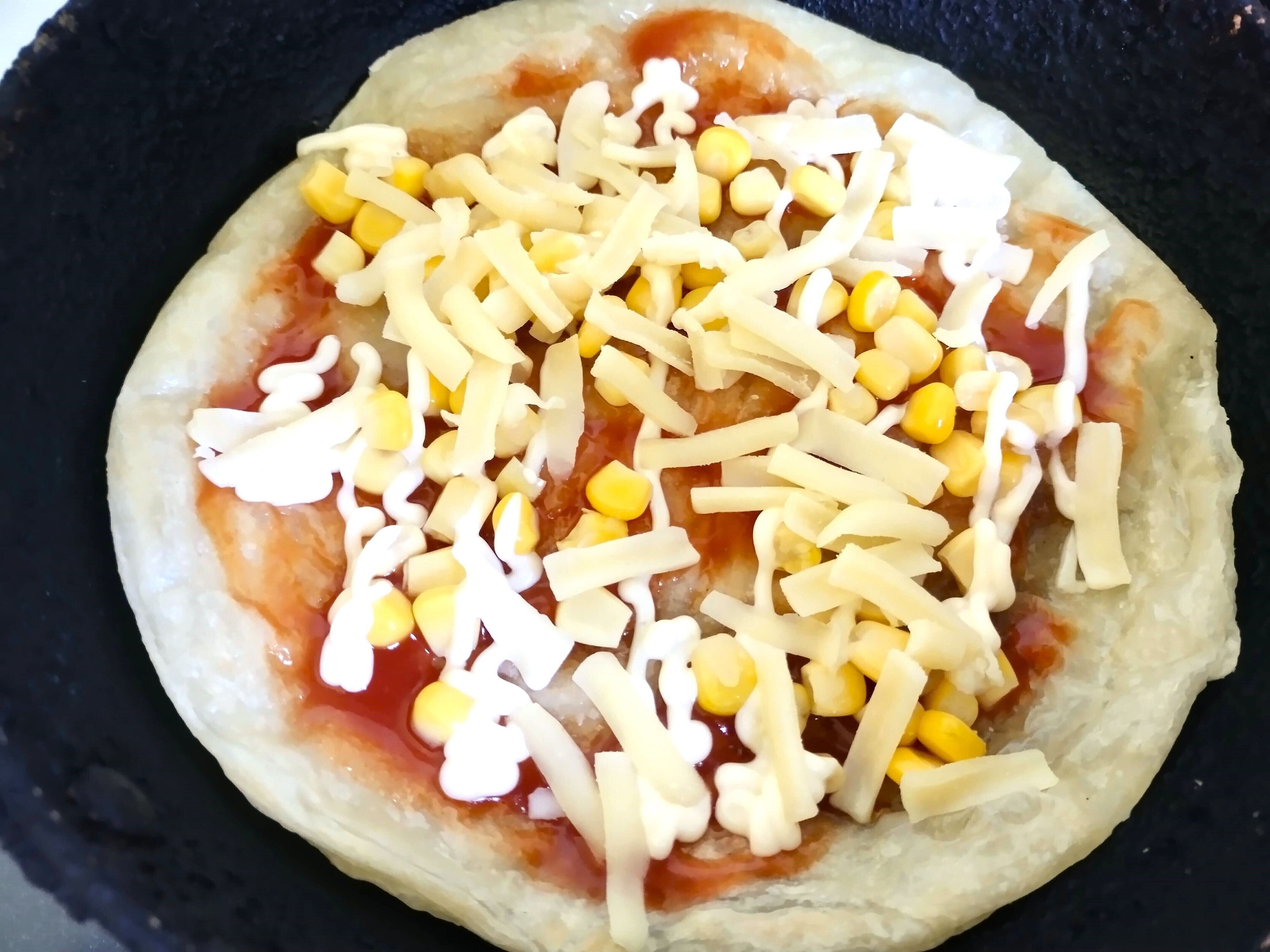 フライパンにふたをして、チーズが溶けるまで焼いたら完成です。パラタがパリパリとして、クリスピー生地のピザのような感じになります。お1人様ランチやおやつにもおすすめですよ。