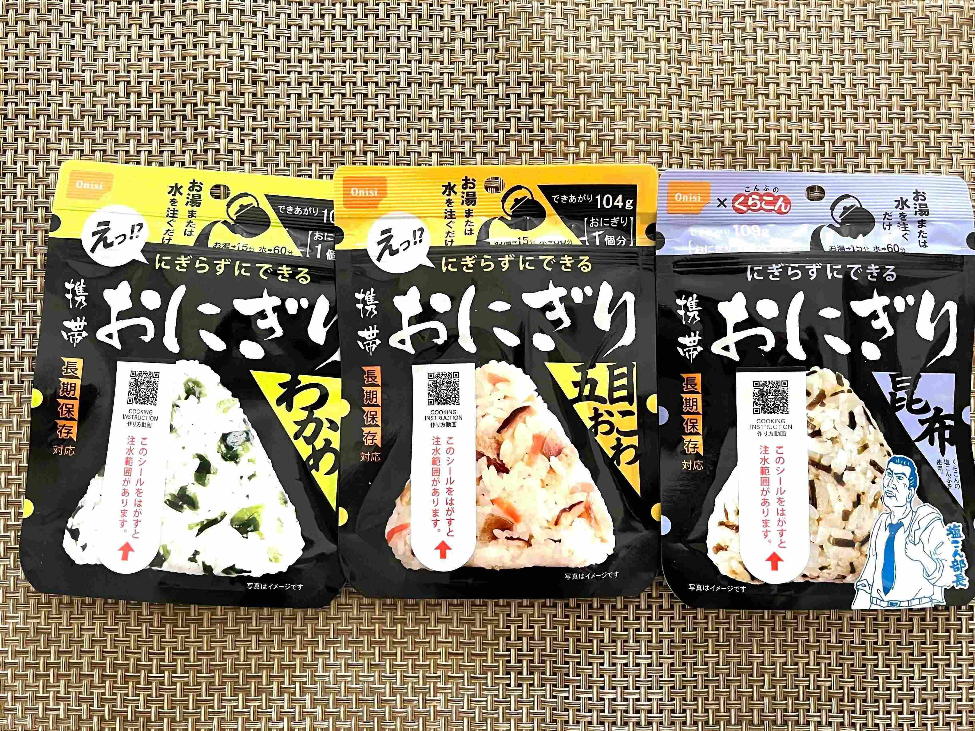 「携帯用おにぎり」なのですが、長期保存も可能で防災にはとても適している商品です。お湯だと15分、お水だと60分でおにぎりができます。お水の場合だとかなり時間がかかるのがデメリットではありますが、おにぎりならお皿やお箸も使わなくていいので便利ですよね。