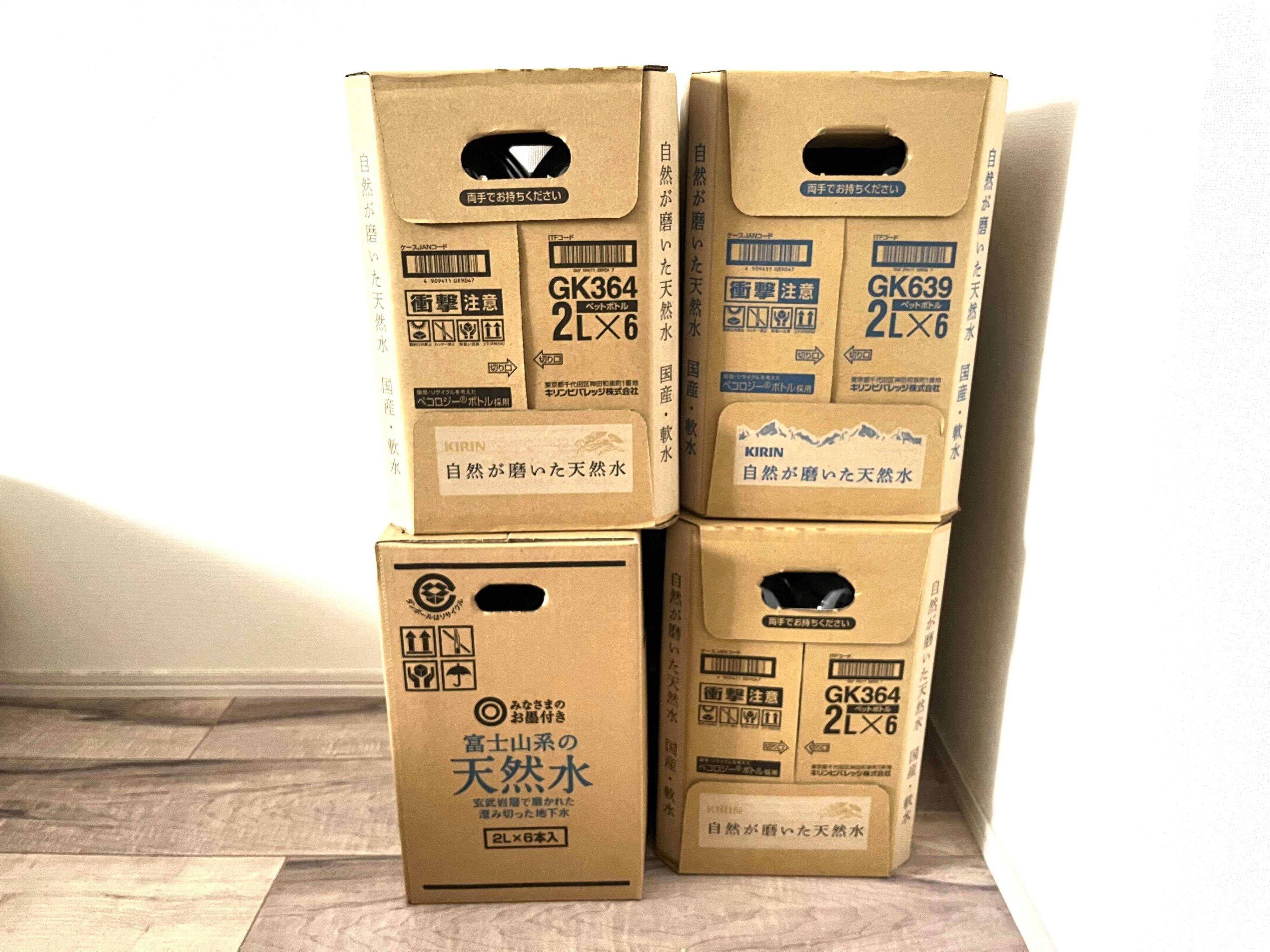 災害時は最低でも、家族の人数×3L×3日間分のお水が必要と言われています。わが家の場合は4人家族なので、3日間で36Lのお水が必要。
