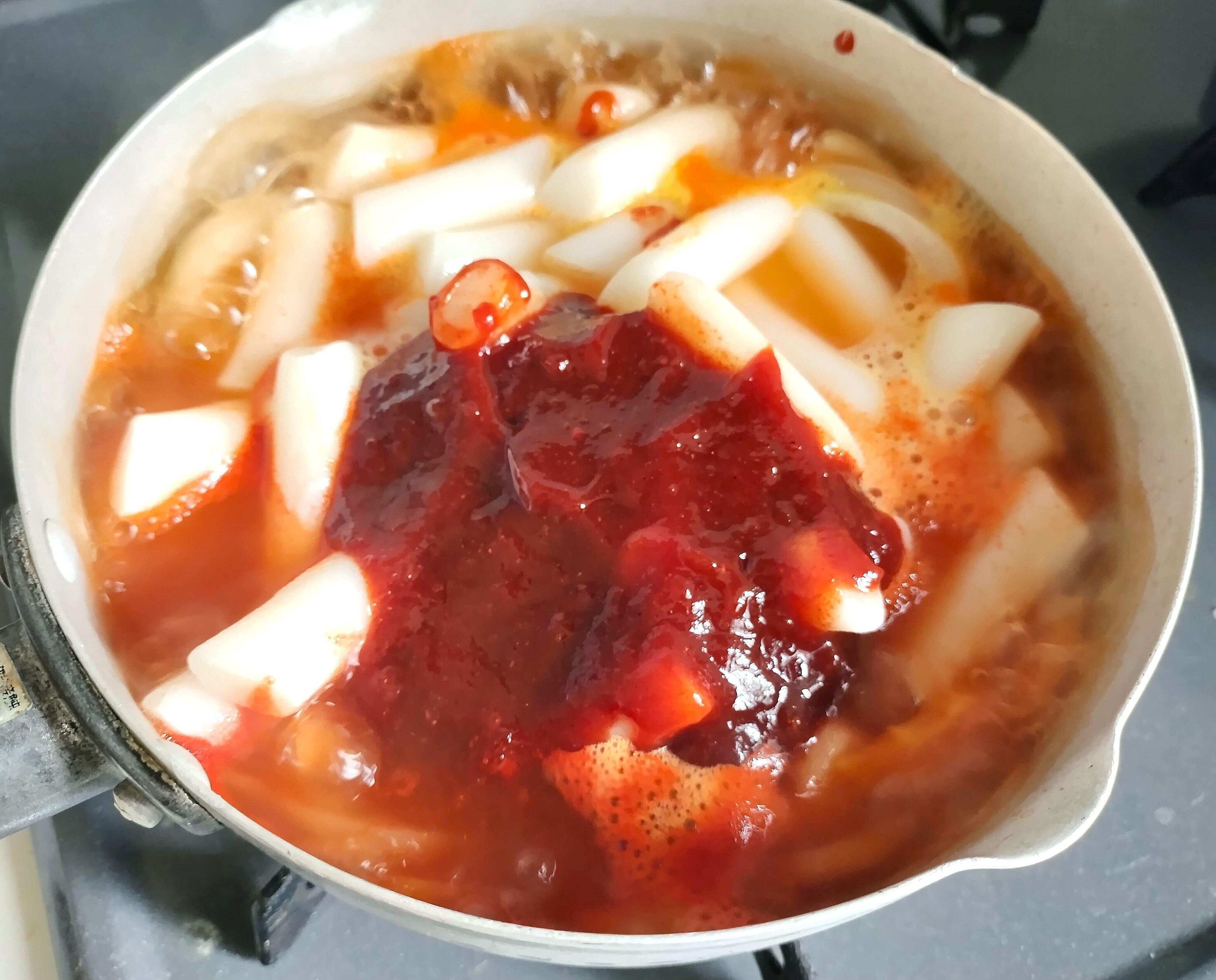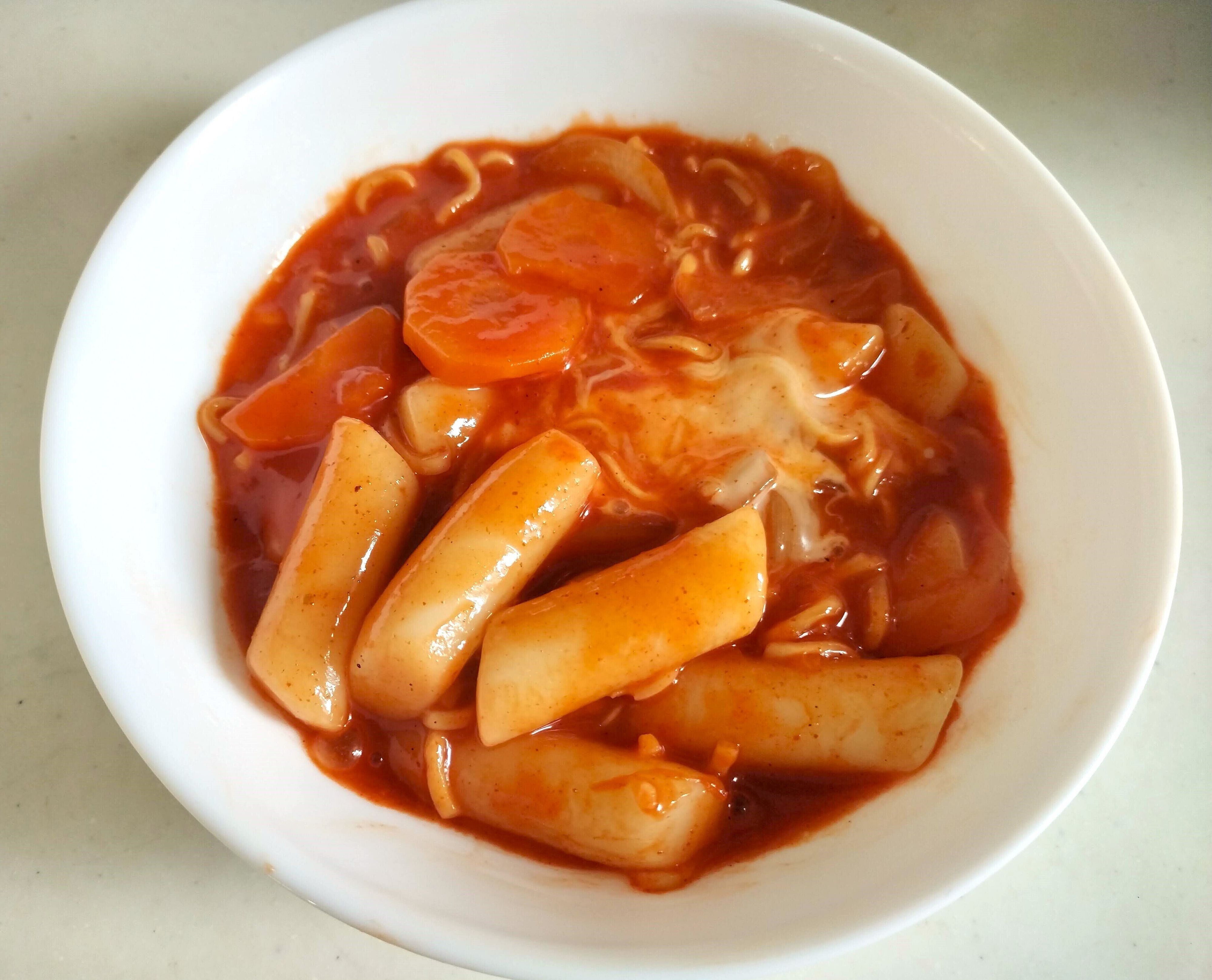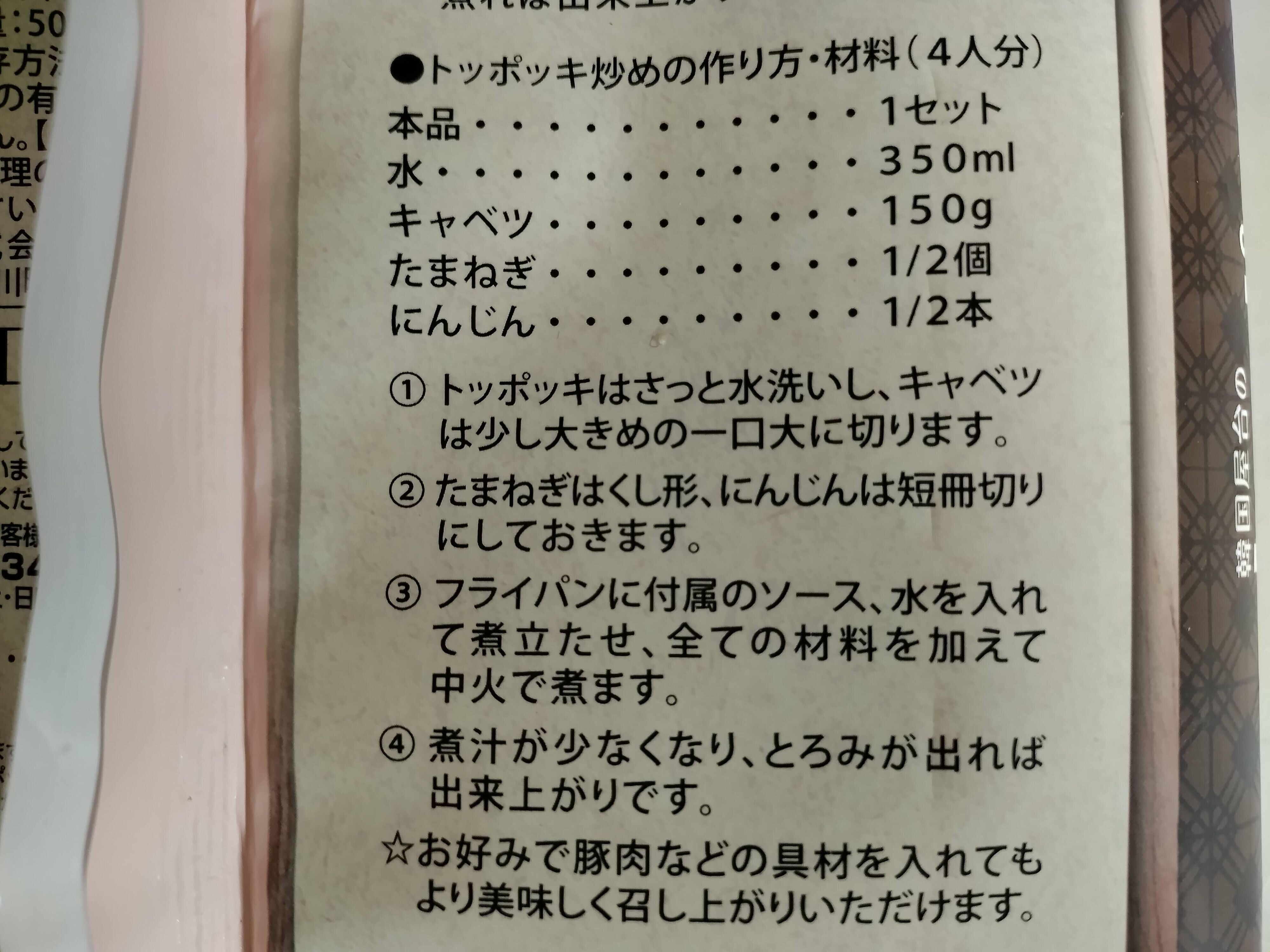 作り方はとても簡単で、具材(キャベツ、玉ねぎ、人参など)と袋に入っているトック(韓国餅)とソースをいっしょに煮るだけです。