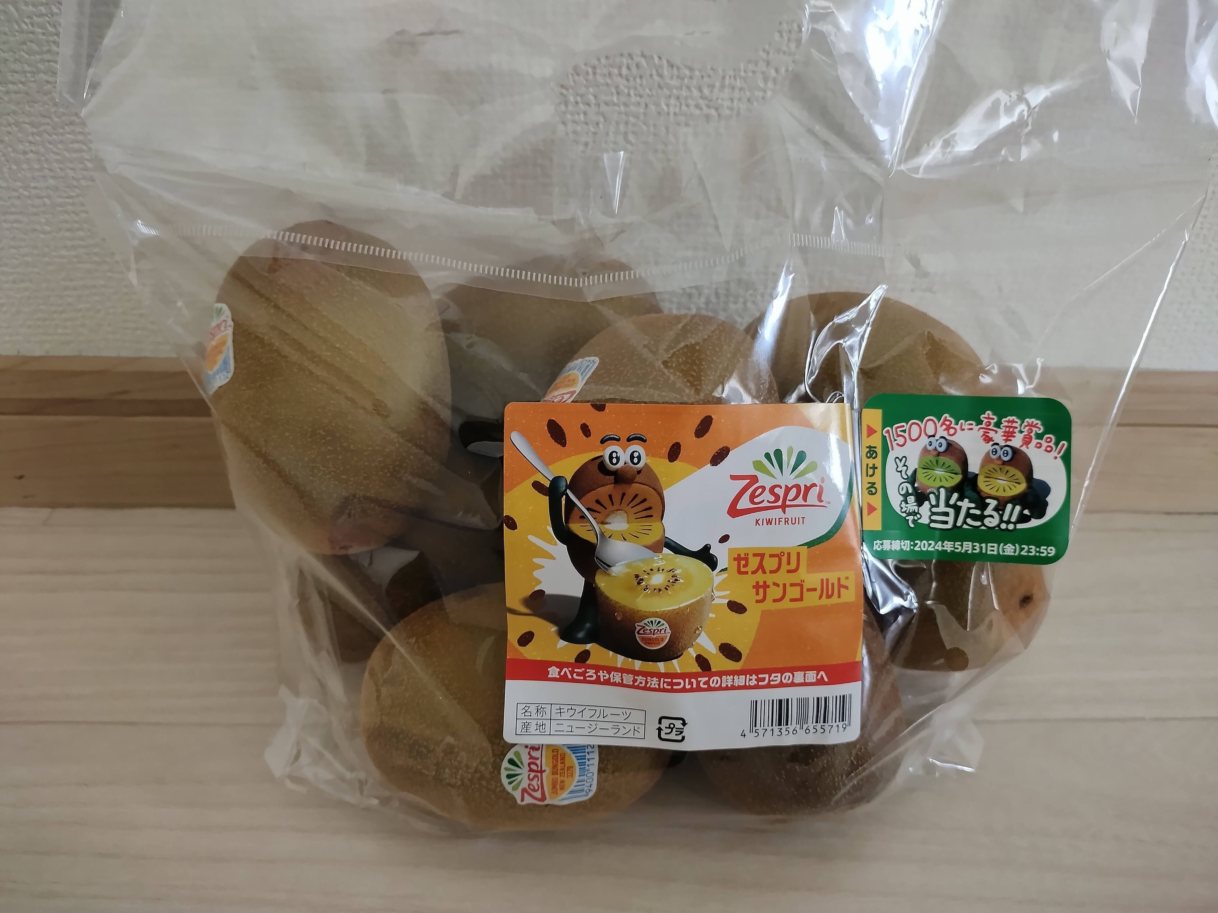 マンゴーと同じくらいよく買うのがニュージーランド産のゴールデンキウイ。今回購入したものは「ゼスプリサンゴールド」というゴールデンキウイで、価格は税込1,398円です(※2024年5月筆者購入時)。