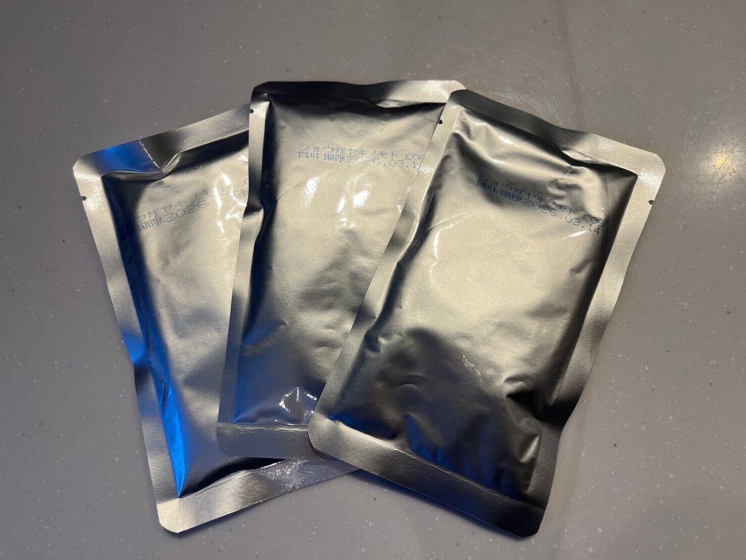 2〜3人前の生姜焼きができる調味料の袋が3袋入っていました。