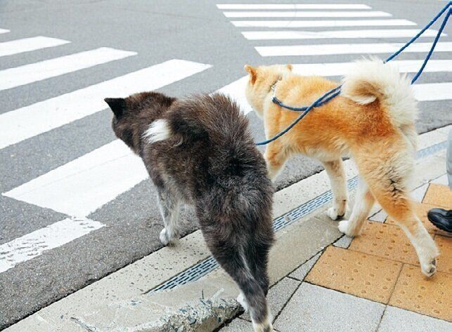 日に4回散歩に行くくろべえと銀は、勤務中も散歩へ。歩き慣れた道を楽しそうに行く2頭を見て、通りかかる人々もニコニコ。タイミングが合えば来場者も散歩に付き添えるそう。
