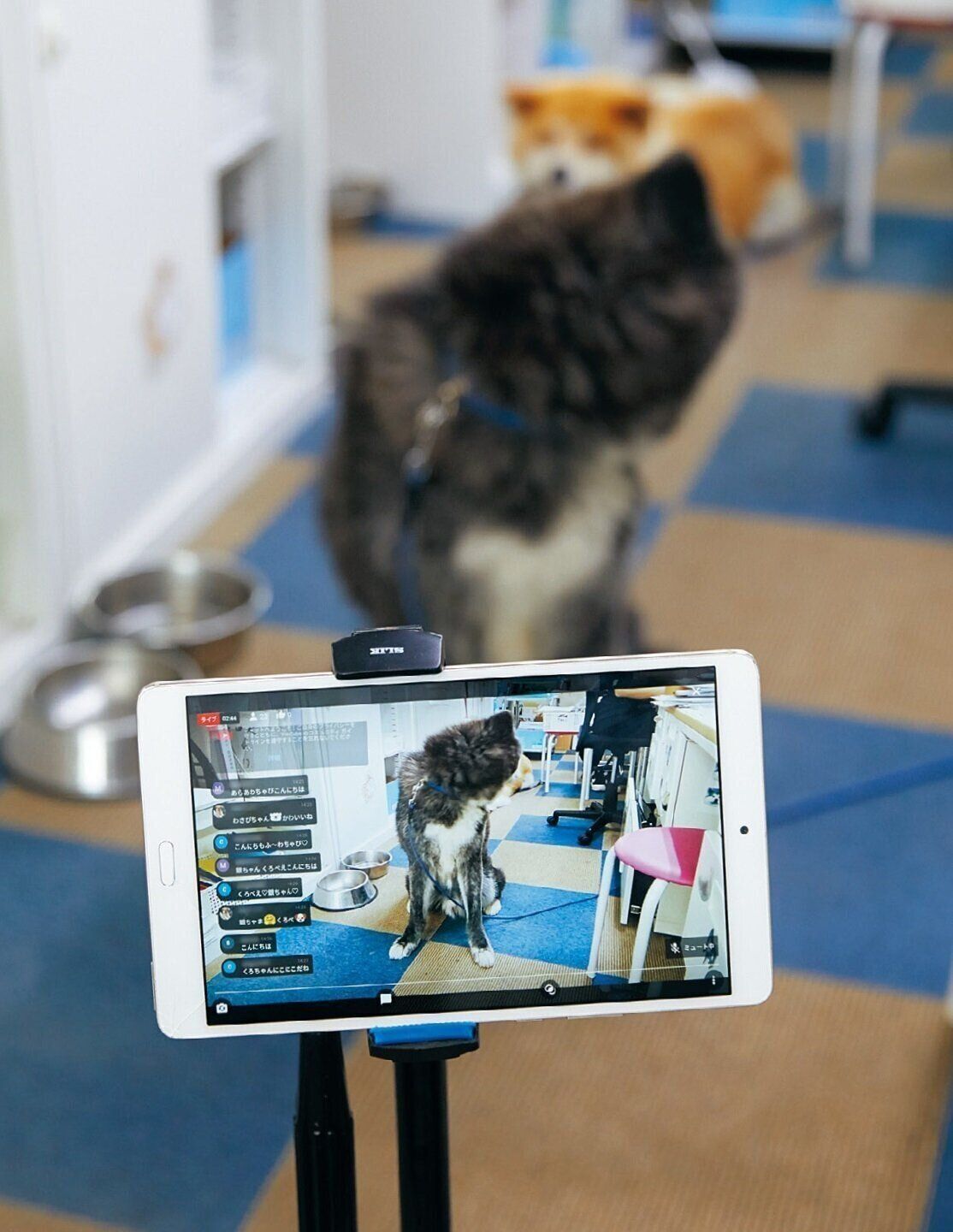 くろ銀コンビが散歩から帰ると、寝ていたわさびも含めライブ配信開始。3頭は事務所の自分たちの定位置でまったり過ごしているだけですが、視聴者から熱いコメントが!