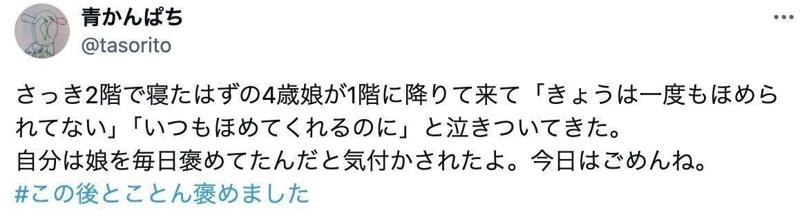 パパはそれを聞いて、自分が娘を毎日ほめていたことに気づいたのだそう。