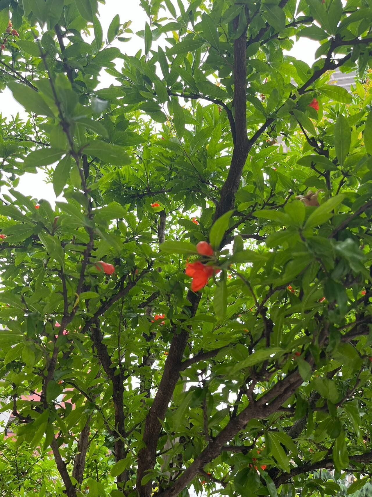 「花というより、コメントで『ザクロでは?』と言われて調べて『ホントや!』とわかったときが驚きでした。ザクロの子どもってこんなにかわいいのですね!今では毎日、この木の下をとおるときは成長していくザクロを見て楽しんでいます。ありがたし」
