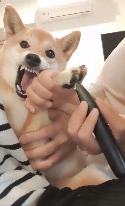 爪切りと肉球間の毛剃り?が嫌いすぎてムキ顔!怒るけど決して噛まないワン😁#柴犬#犬好きさんとつながりたい #柴犬との暮らし pic.twitter.com/t2HB1PdS4K