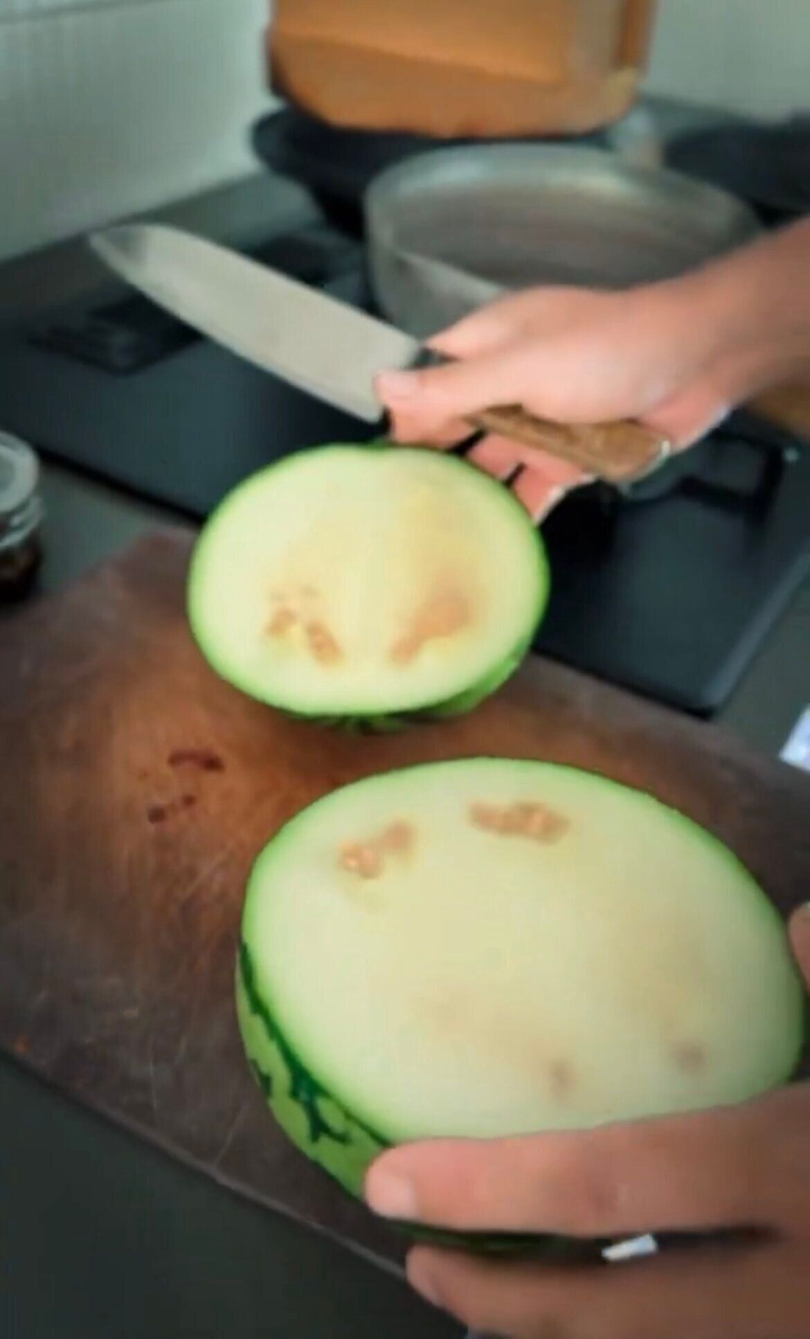 見た目は完璧なスイカなだけに、想像していた断面と違いとてもびっくりですよね。