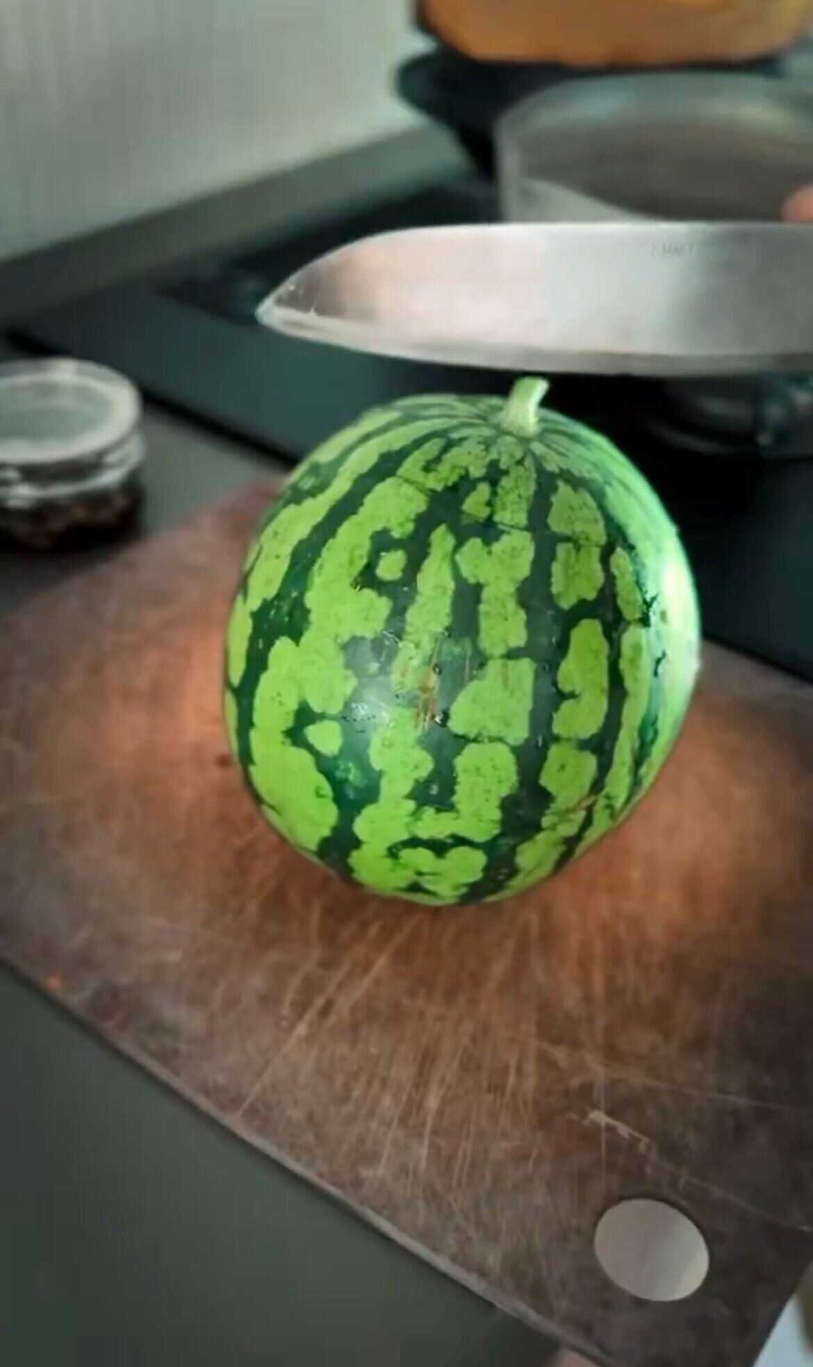 スイカの底まで包丁が入りました。