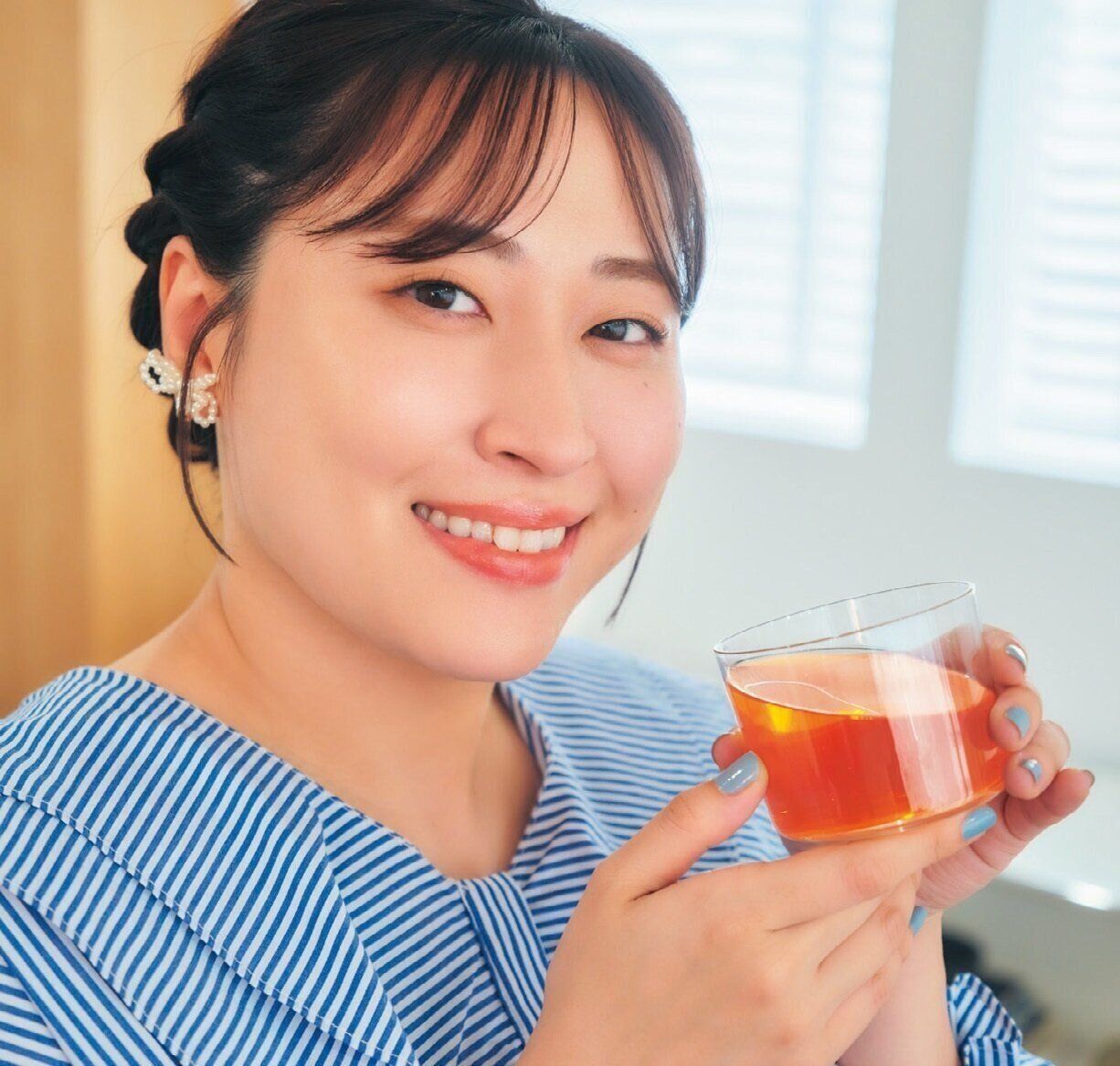 ※丸山さん着用衣装:ブラウス(AMAIL)、デニムパンツ(アズ ノゥ アズ オオラカ)、イヤリング(LUNA EARTH)