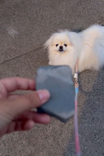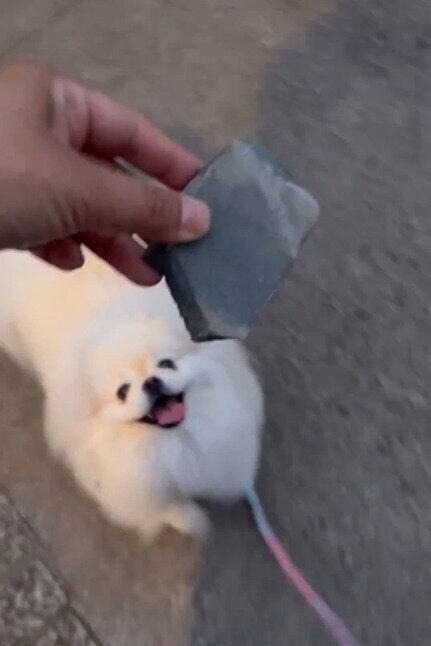 なんこつさん(@nankotsudesu315)が投稿したのは、愛犬・なんこつちゃんのお散歩風景です。途中で座り込んでしまったなんこつちゃんに、飼い主さんが“あるもの”を取り出すと効果てきめん。なんこつちゃんの表情にも注目です。