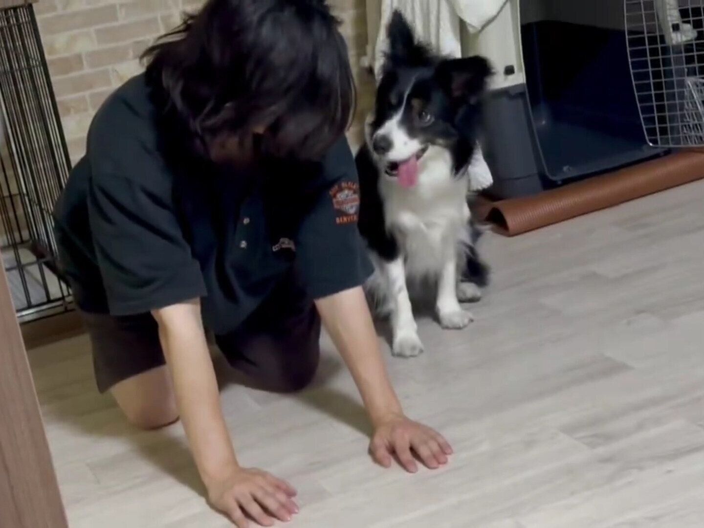 とーちゃんの真似するモク🐶#ボーダーコリー pic.twitter.com/Y3HKjC1Hn0