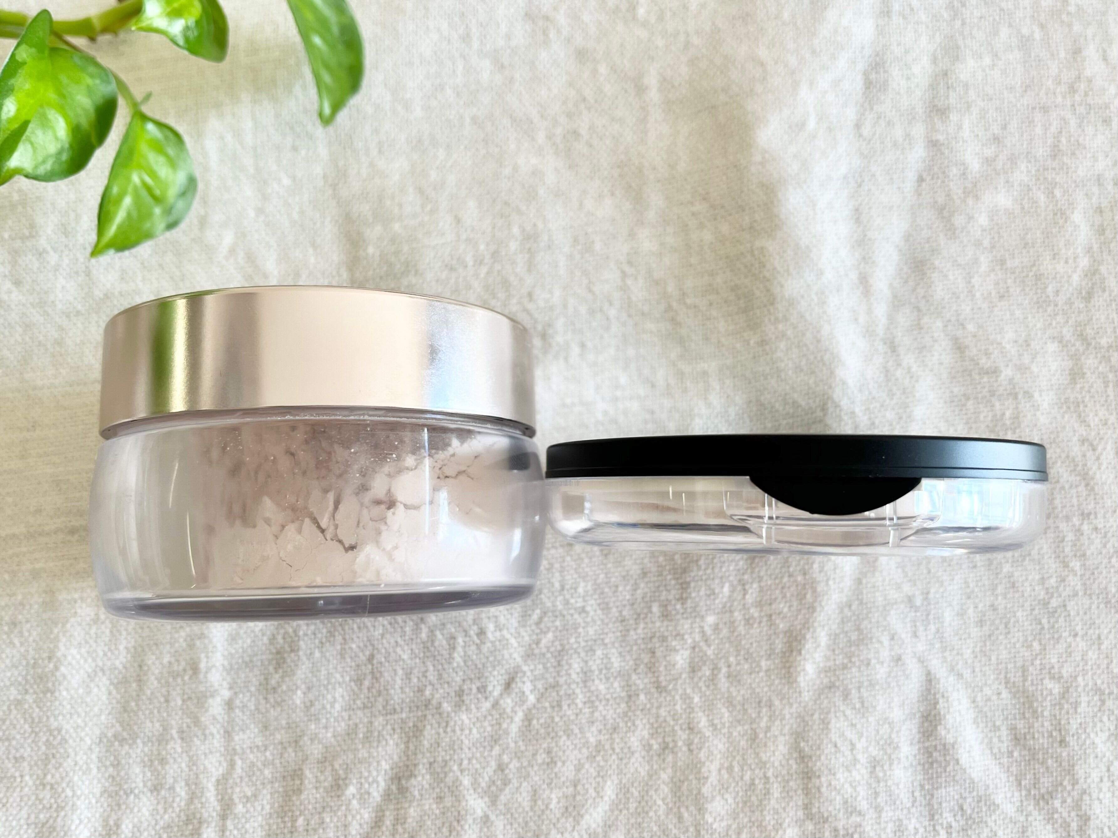 実際に普段使っているフェイスパウダーのケースと比較してみると、厚みは一目瞭然!3分の1ぐらいの厚みになって、格段に持ち運びやすくなりました!